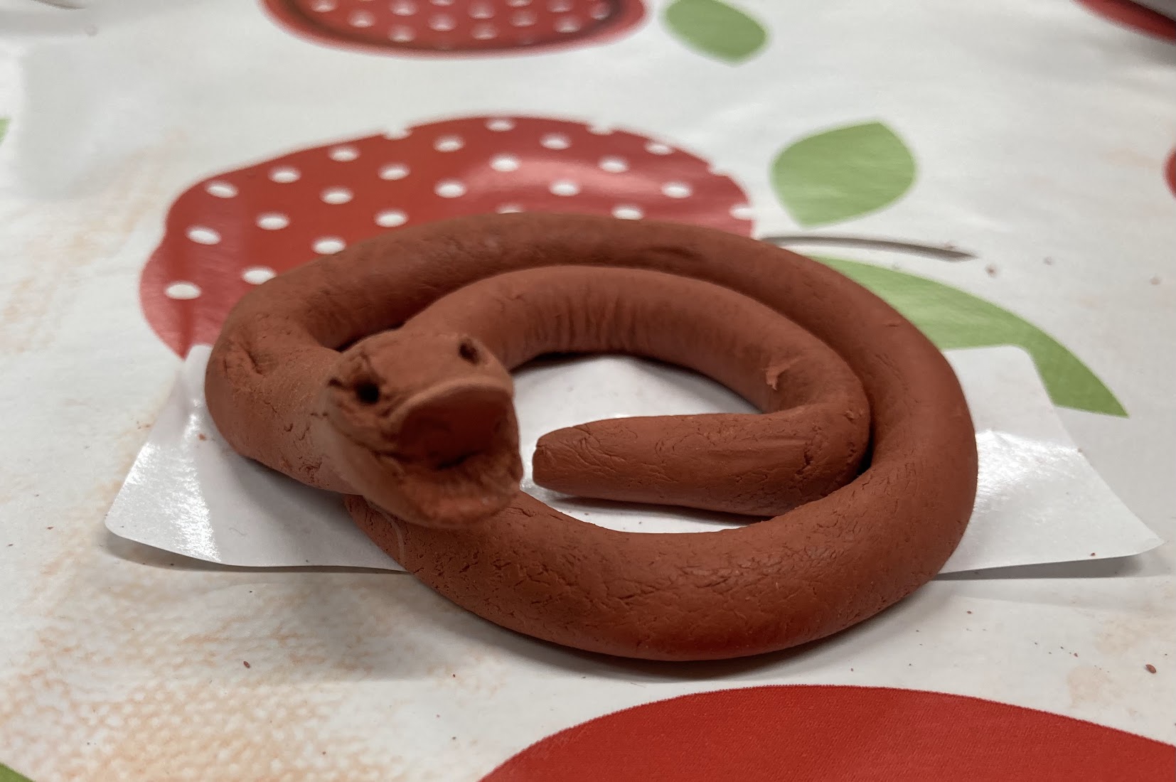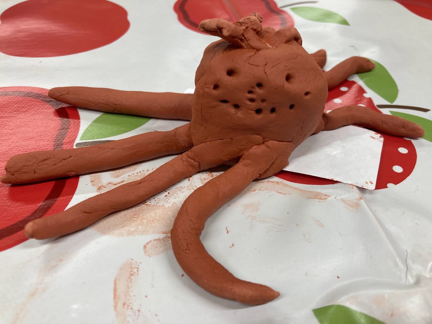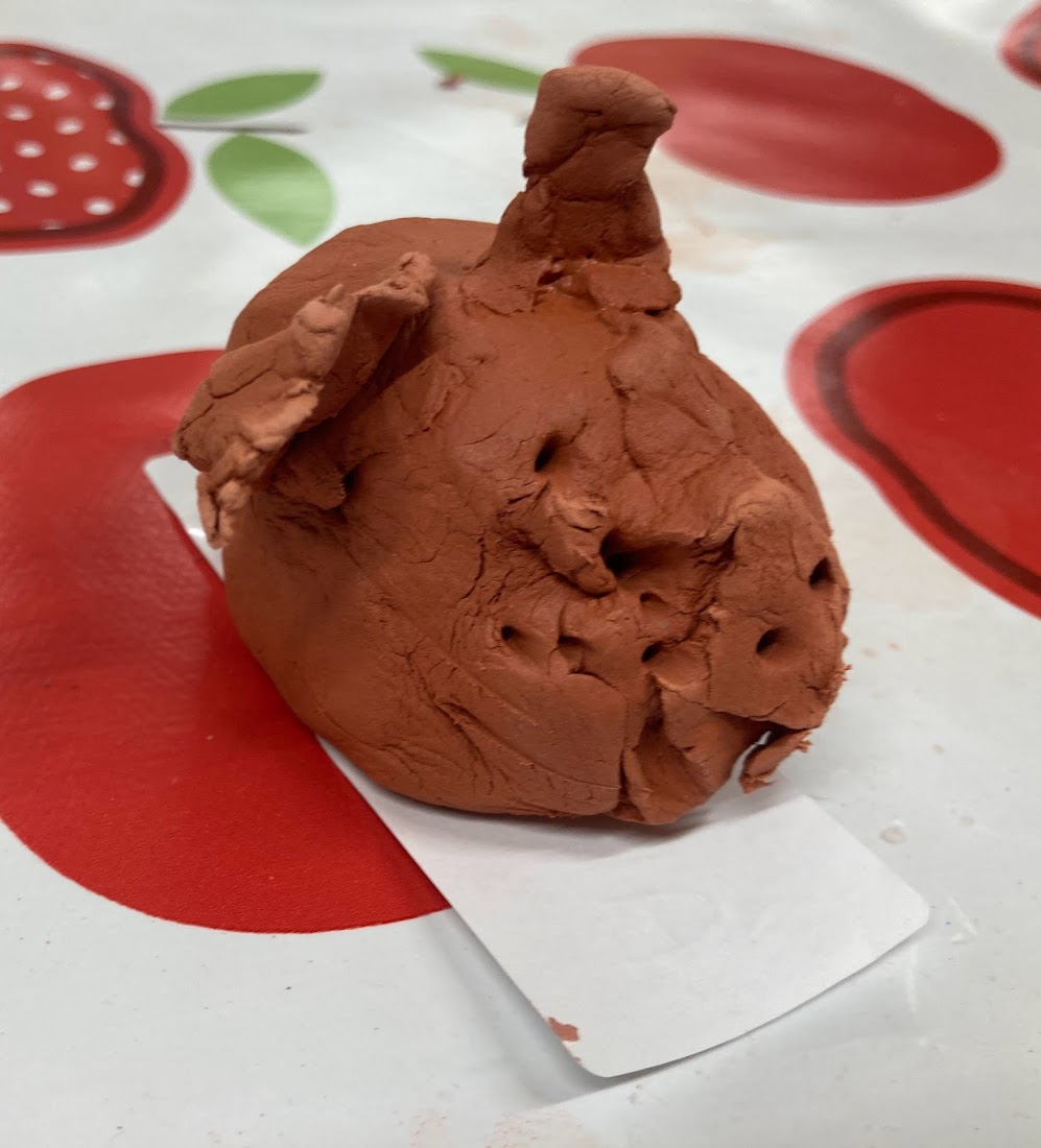 We started off by squishing and squeezing the clay to warm it up, then we thought about what we wanted to make. We used our hands, a rolling pin and different mark making tools to help us make our animals!