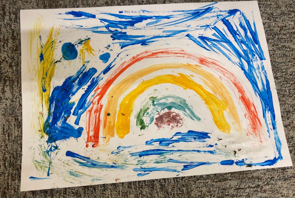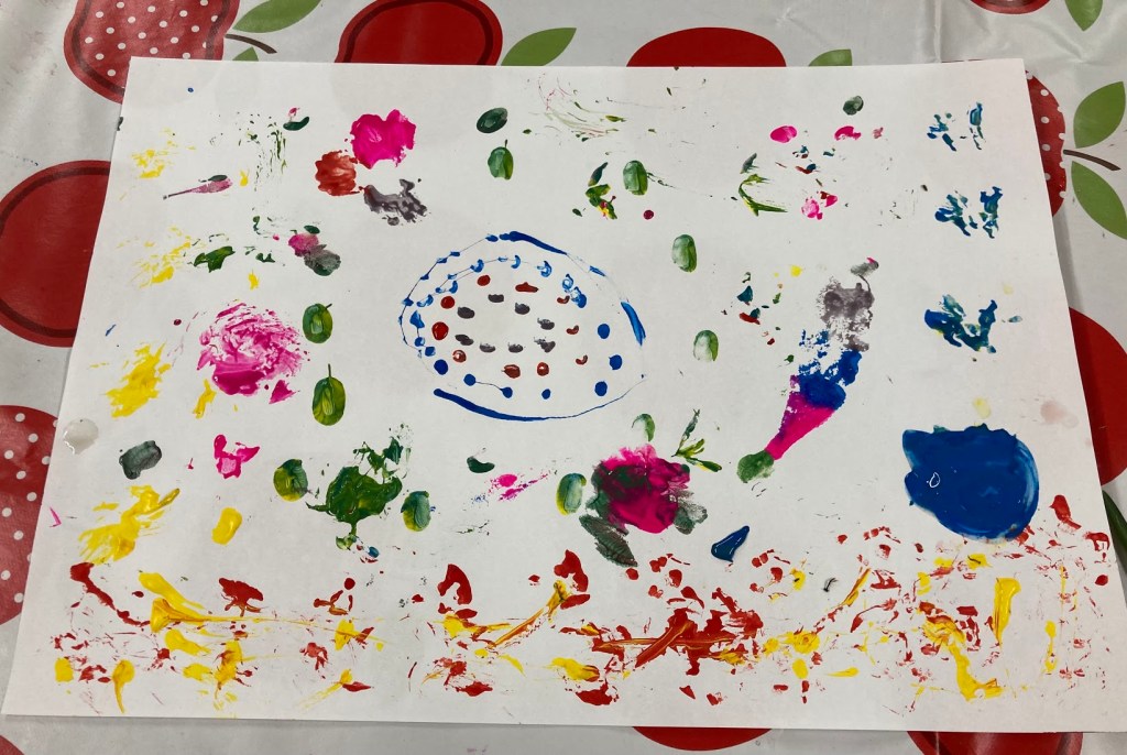 Whilst we were painting we found a caterpillar on one of the leaves! Everyone enjoyed looking at our surprise visitor before we took him outside to a nearby tree.