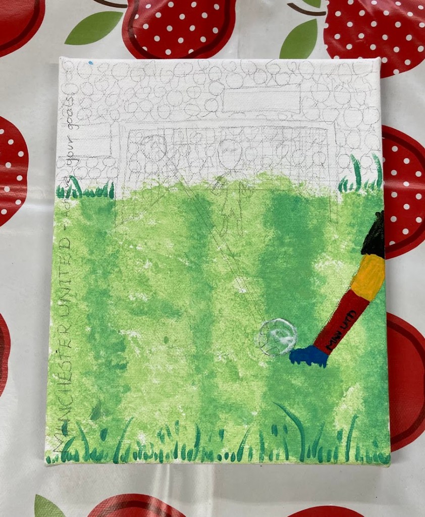 Today we started our canvas painting mini project. The children decided they enjoyed the more express style of illustrations and cartoons. Since their last session they had planned their final piece at home and spent today finalising their drawing and beginning to paint, using what we had learnt about colour mixing last month.