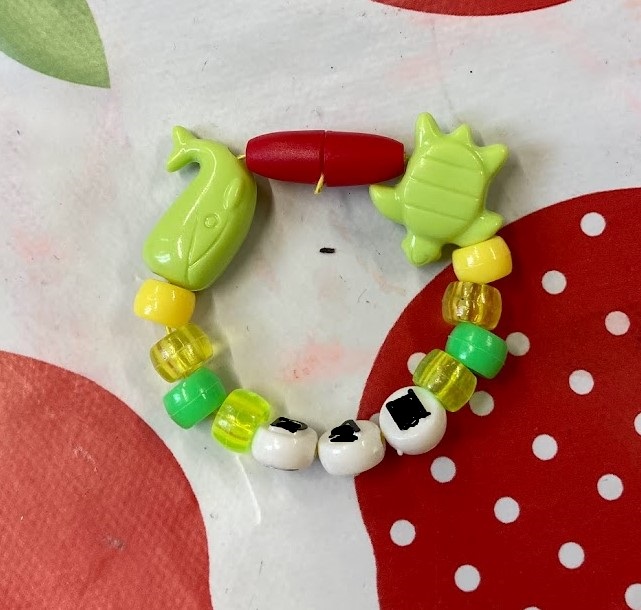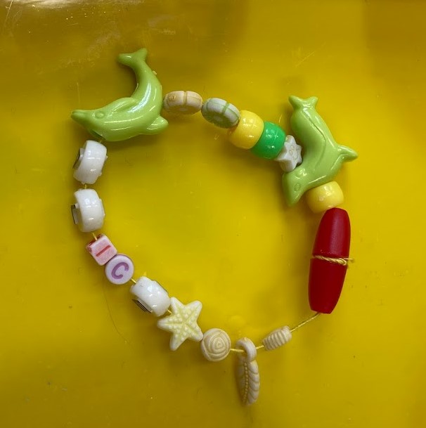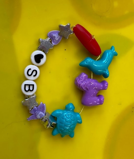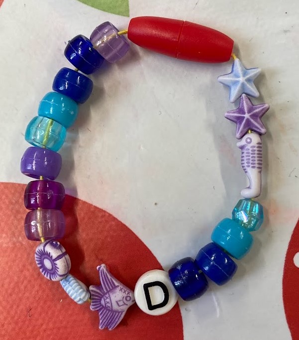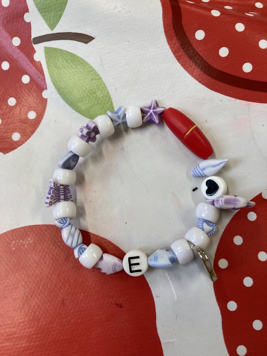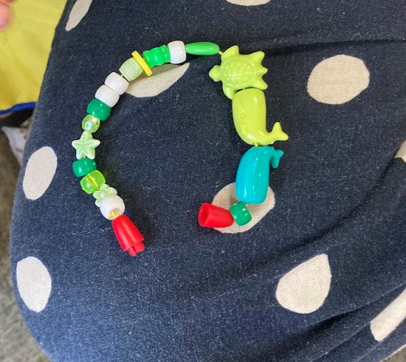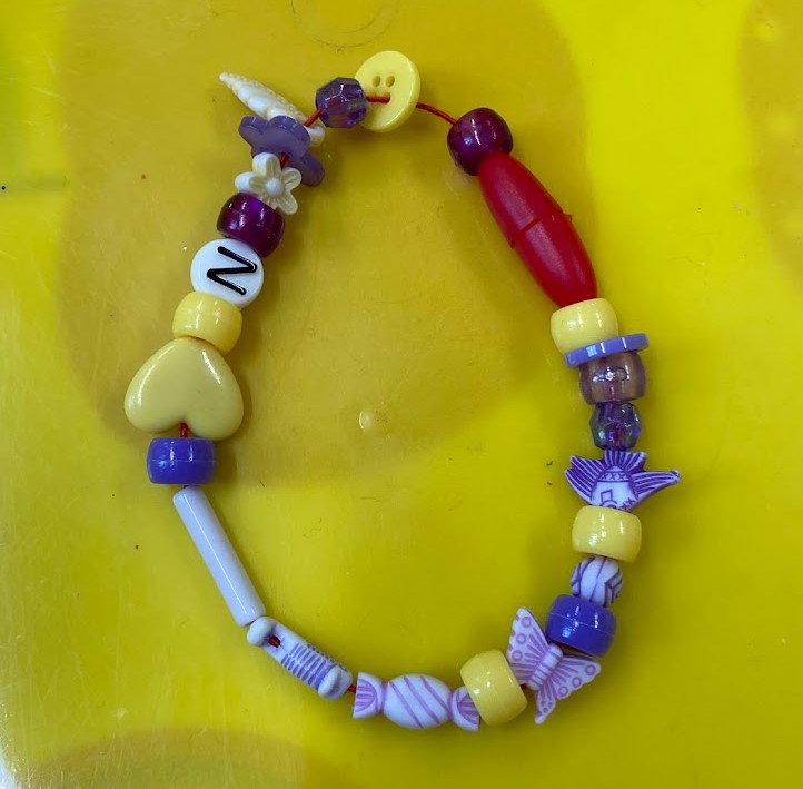 Each person chose a main colour for their bracelet and then they chose a second colour that was either opposite or next to their main colour on the colour wheel. The white, silver and letter beads were free for everyone to use. With so many lovely colourful beads it was hard to pick which ones to use!