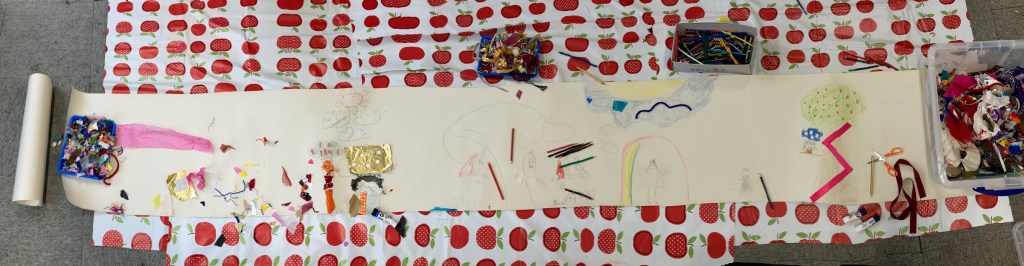 Everyone enjoyed working together and planning where to put the houses, trees and fairies. We will be continuing our fairy grotto next week!