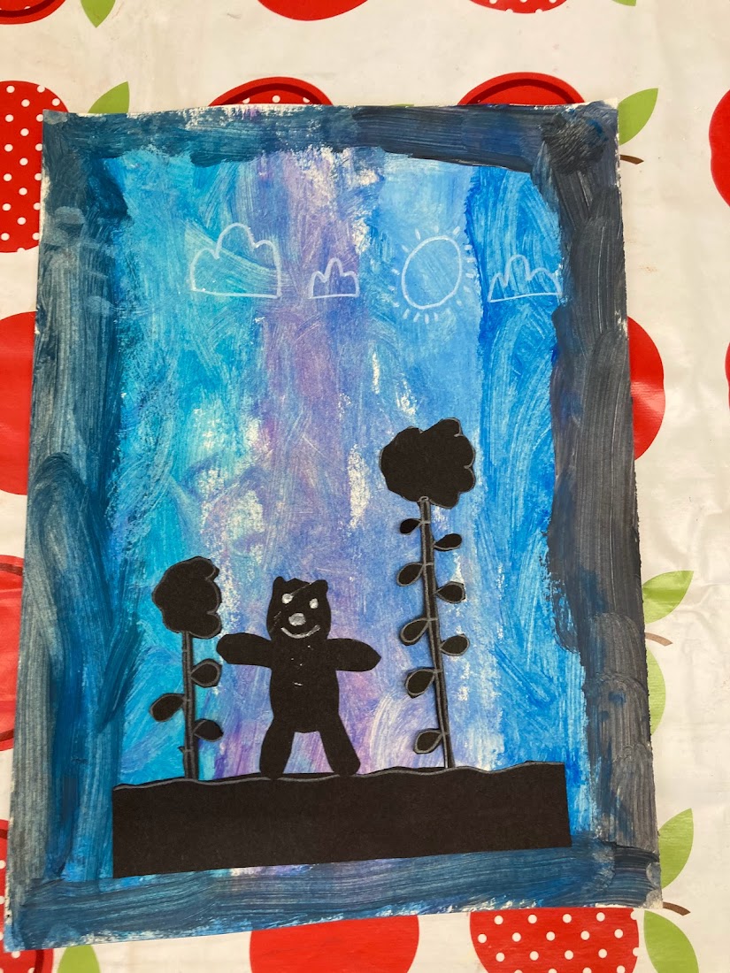 This week we have been exploring the idea of warm and cold colours by making silhouette paintings of animals. We used warm colours to make backgrounds for the animals from hot climates and we used cold colours to make backgrounds for the animals from cold climates.