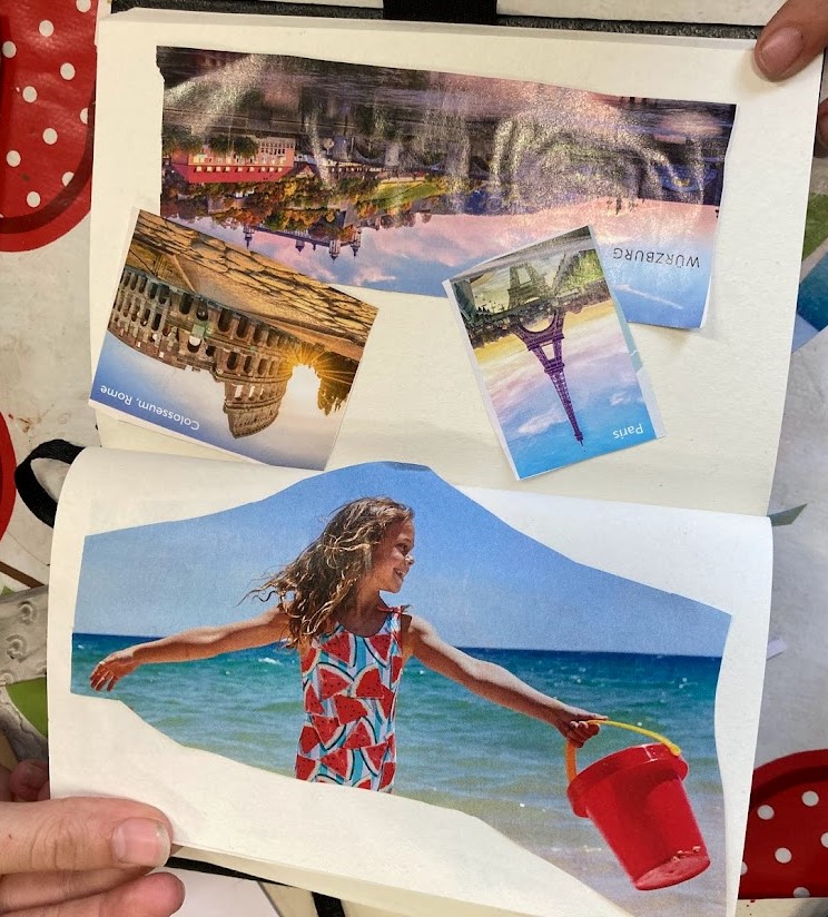 During the second half of the session we began our second mini project. We are going to create some books based on the theme of travel. We’ve got some interesting ideas such as a book about footballers for Manchester United and where they came from and a concertina book showing all the places it’s creator has been on holiday. We also did some mini collages of places abroad. The children had fun trying out different ways of making books and planning an idea for their books.