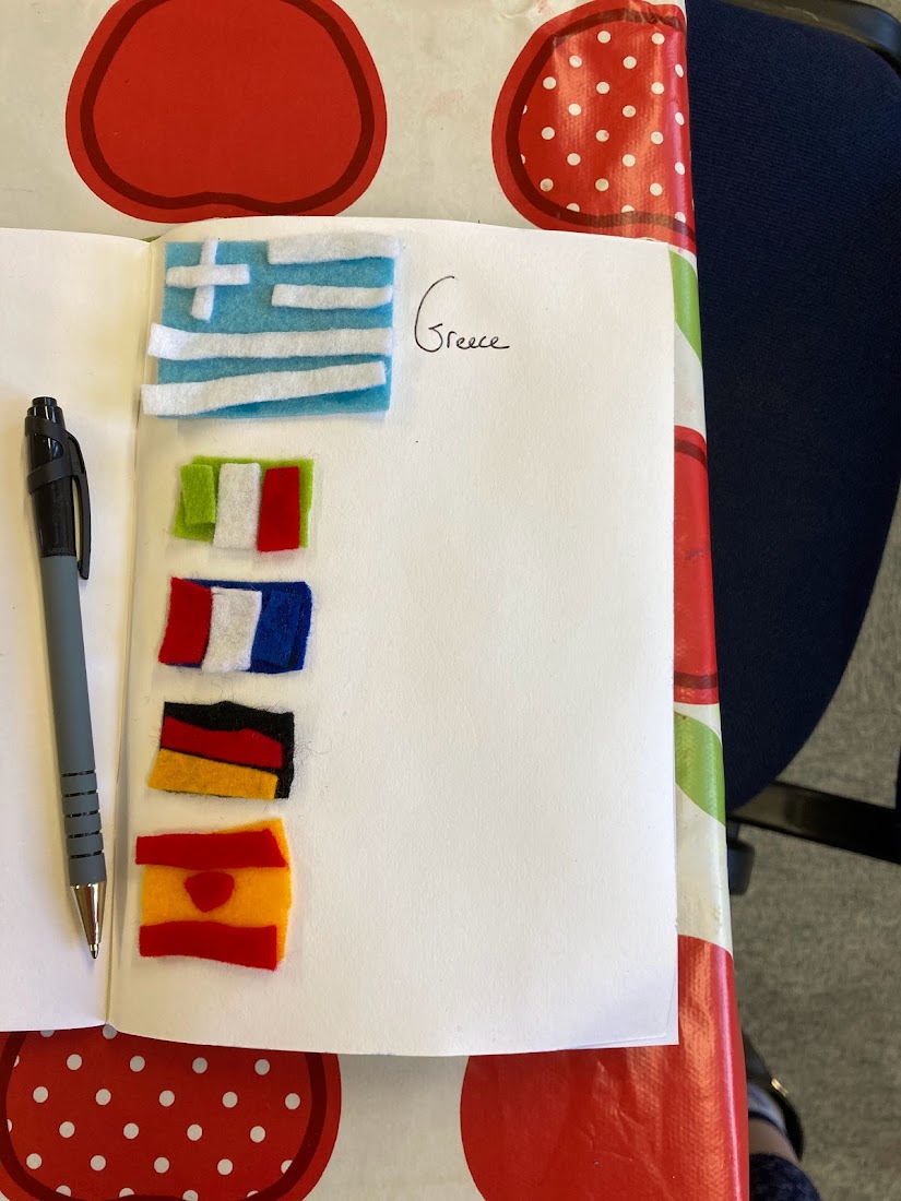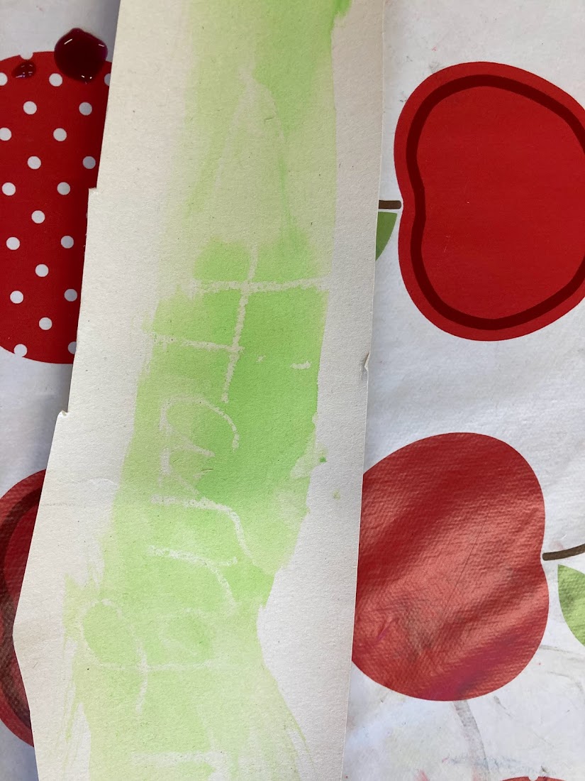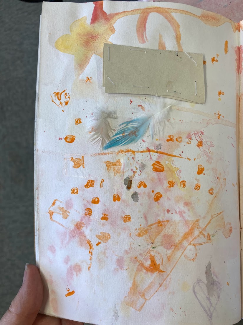This week the Friday group continued experimenting with illustrations for their books, they also experimented with ways of creating their text. One of the children also experimented with sewing paper together with the idea of binding their book themselves this way. We had some feathers to try writing with, letter stamps and pens. The children also ended up experimenting with wax resist as a way to add texture or text in.