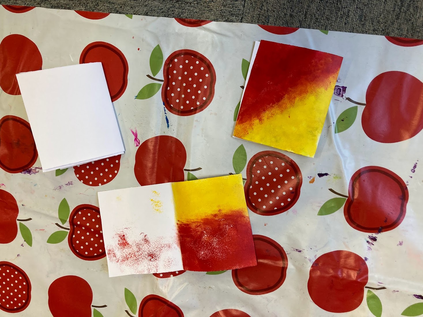 This week we started our final piece for our illustrative book project. We ended up spending most of the session measuring out and cutting the paper for the books to the right size, the last part of the session was spent on painting some of the backgrounds and covers.