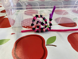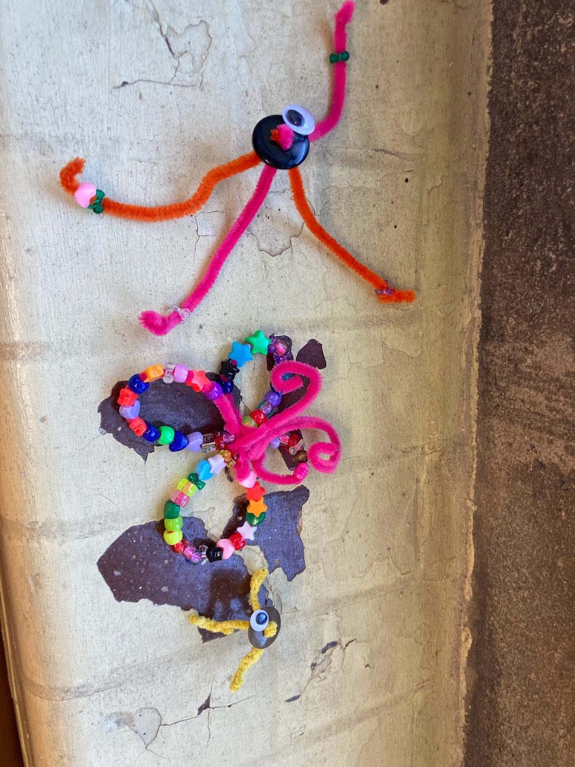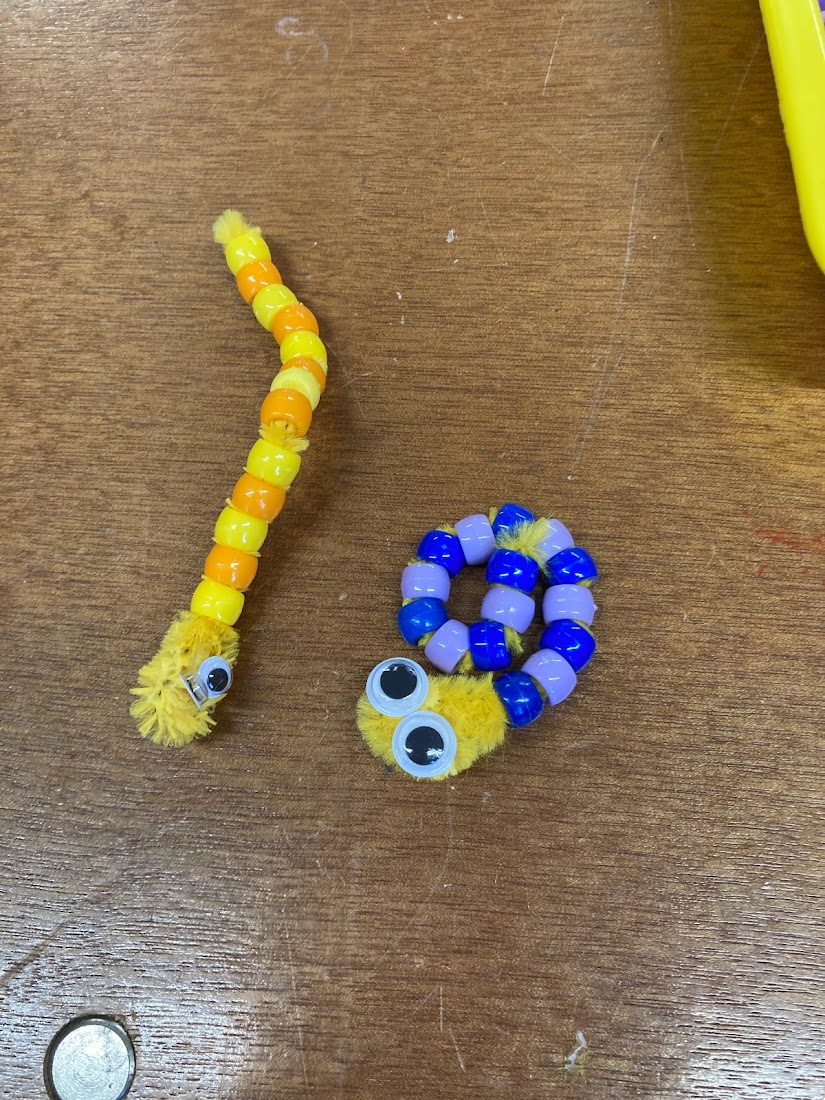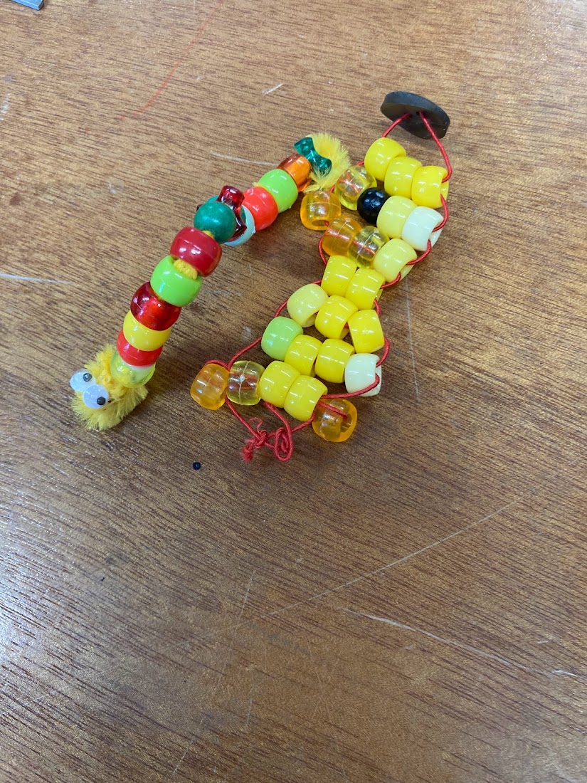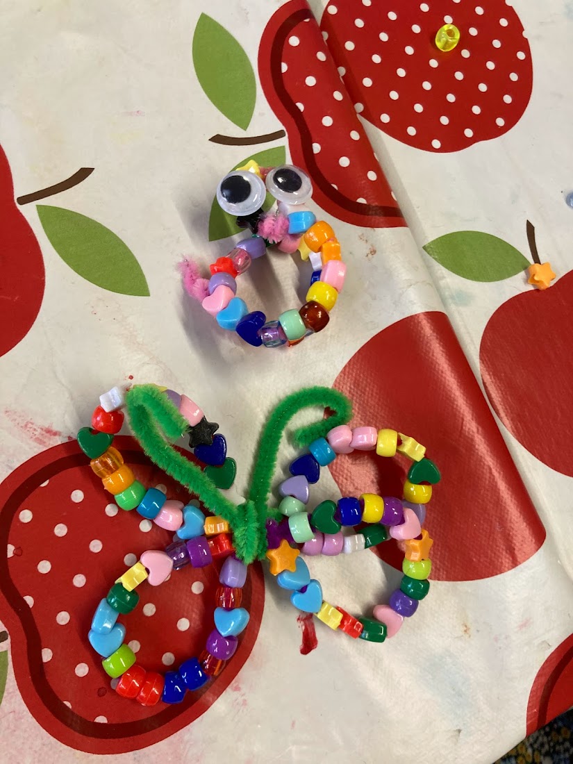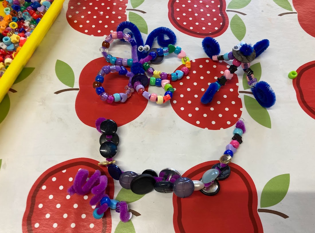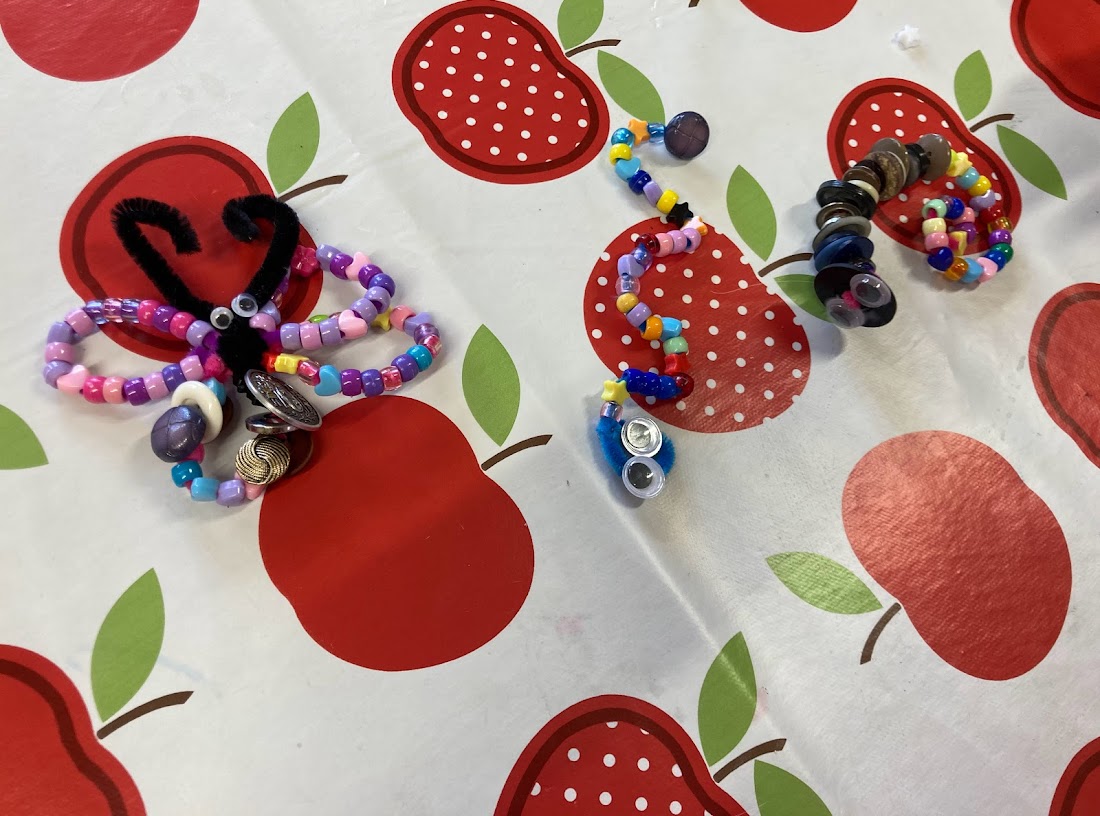 During our first summer holidays extra session the children had a go at creating animals using beads and buttons! We used pipe cleaners as the material they threaded beads onto so that they could bend the pipe cleaners into the shapes they needed. There was also some googly eyes available which ended up making the creatures look incredibly cute. Everyone seemed to love making butterflies, spiders, snakes and caterpillars! We had a few other creatures such as a dog, duck (made with cord instead of pipe cleaners) and snail.