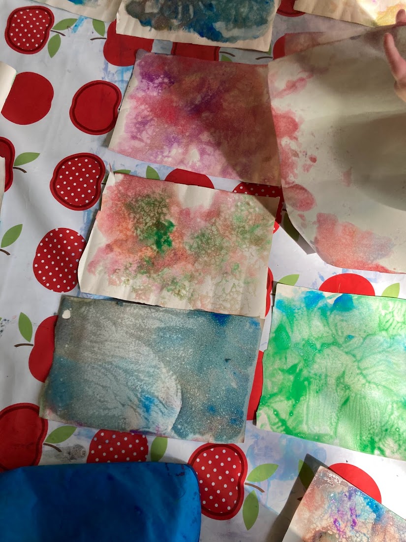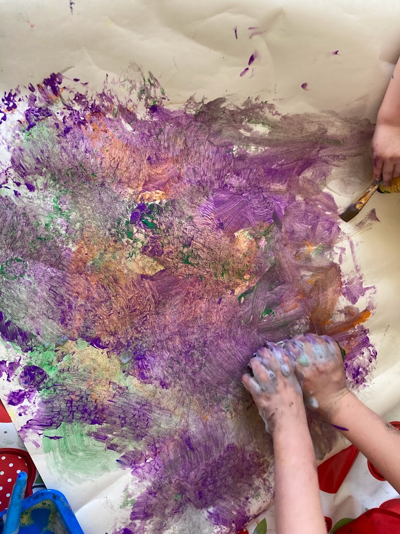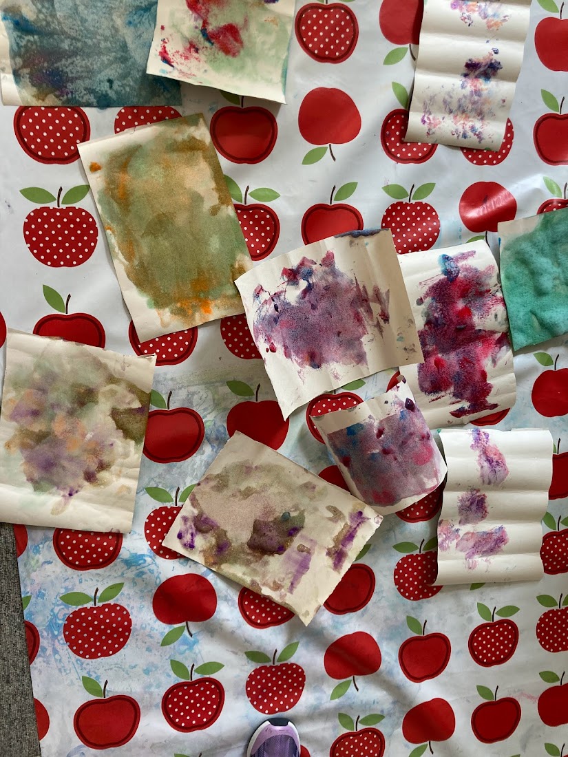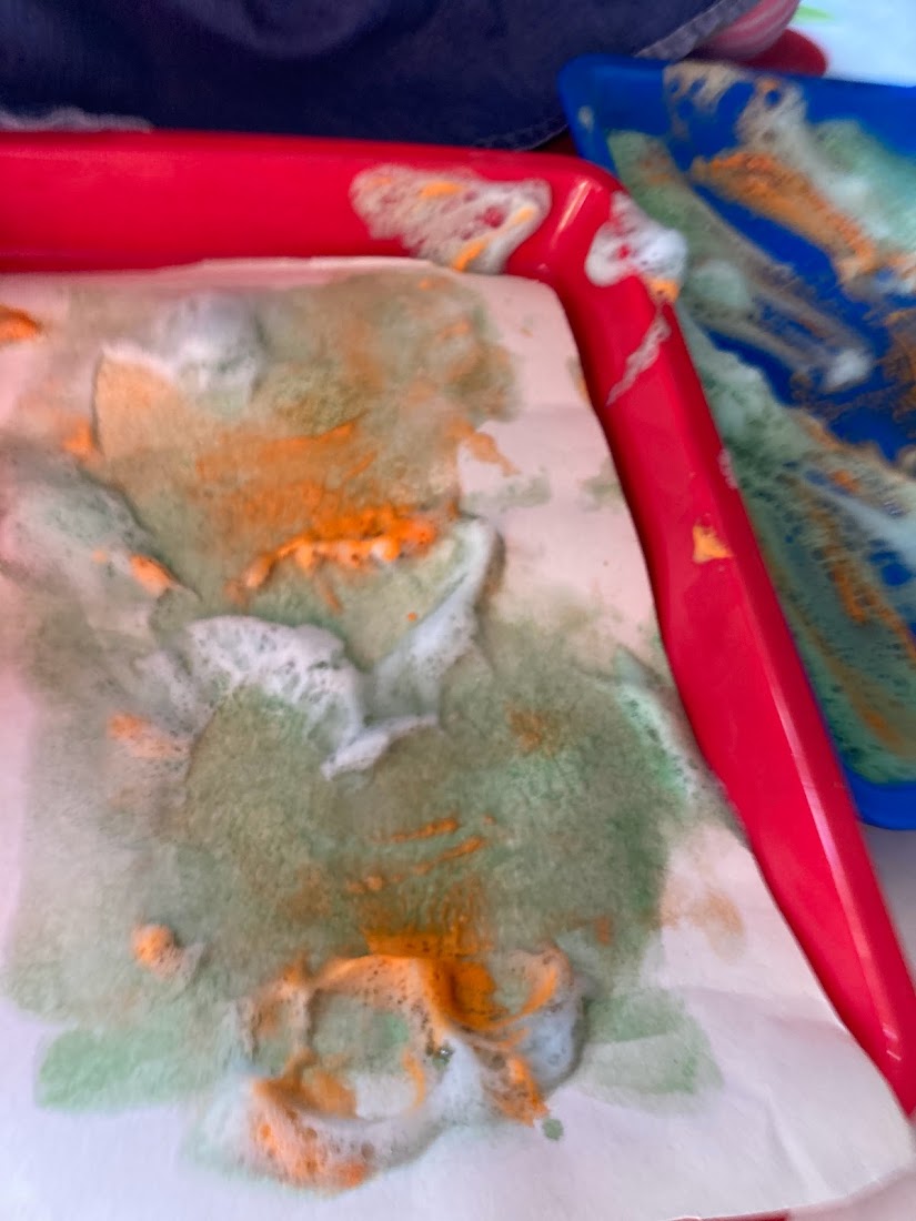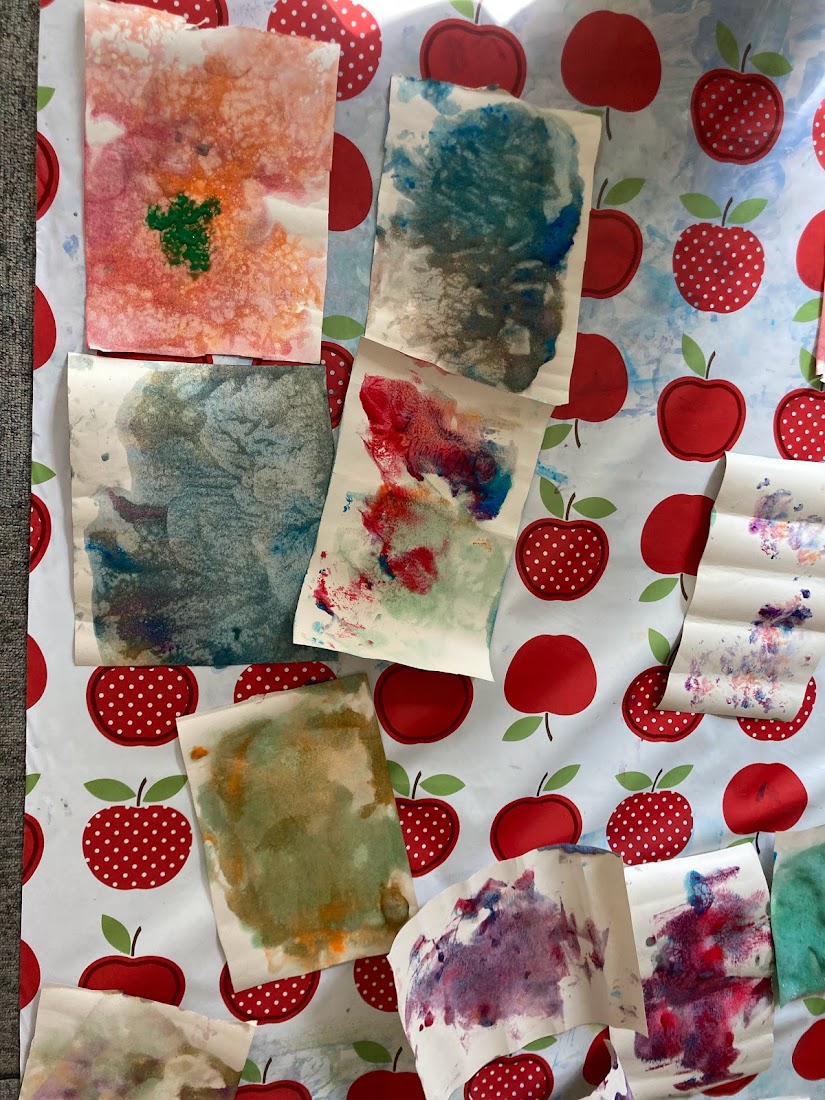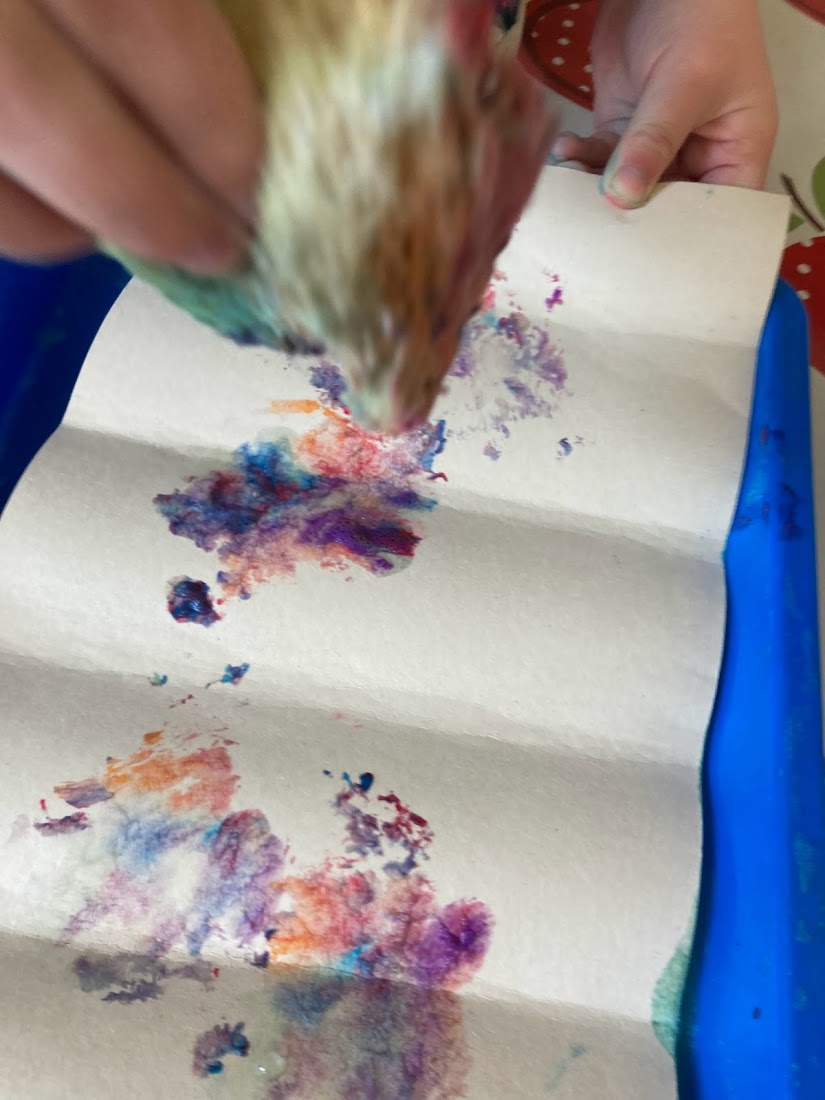 We had the little Crayola paint pots so it was easy to add extra colours to our palette trays and see what happens when we only partially mix colours. The bubbly textures were lots of fun! We even tried popping the bubbles!