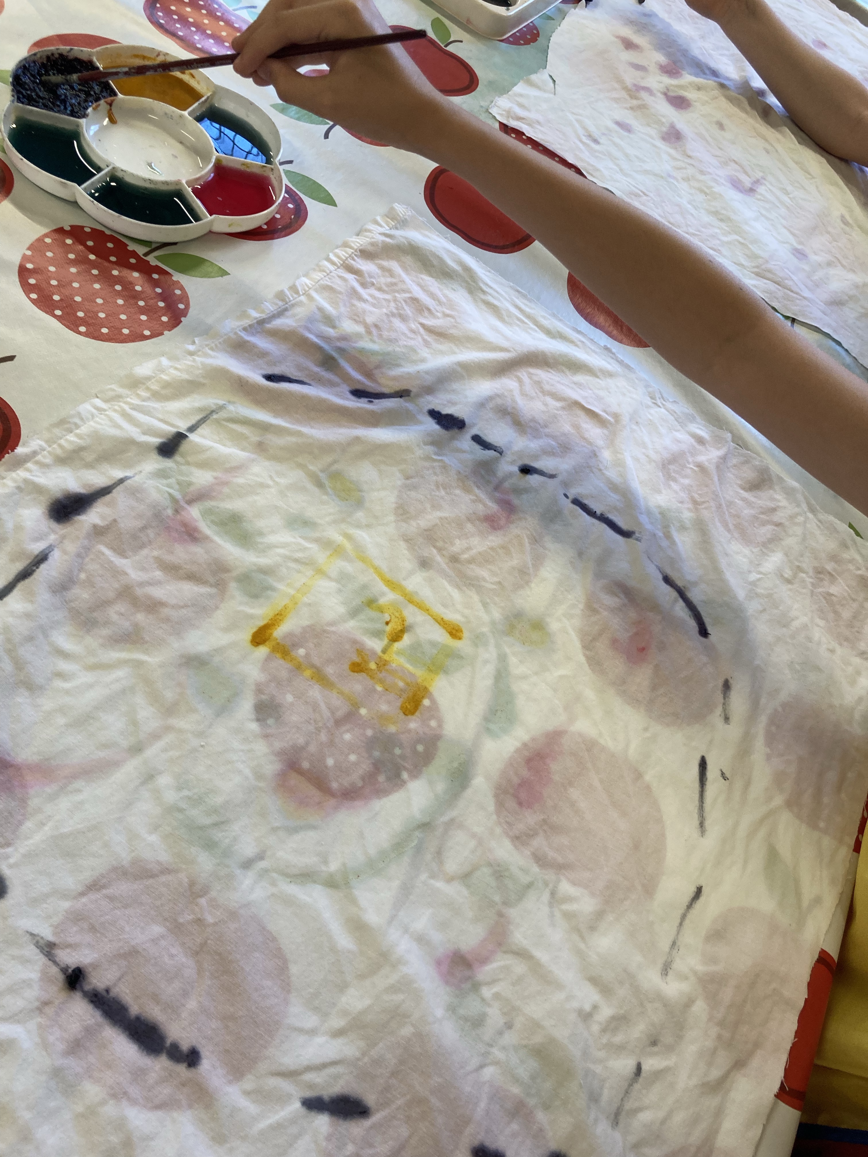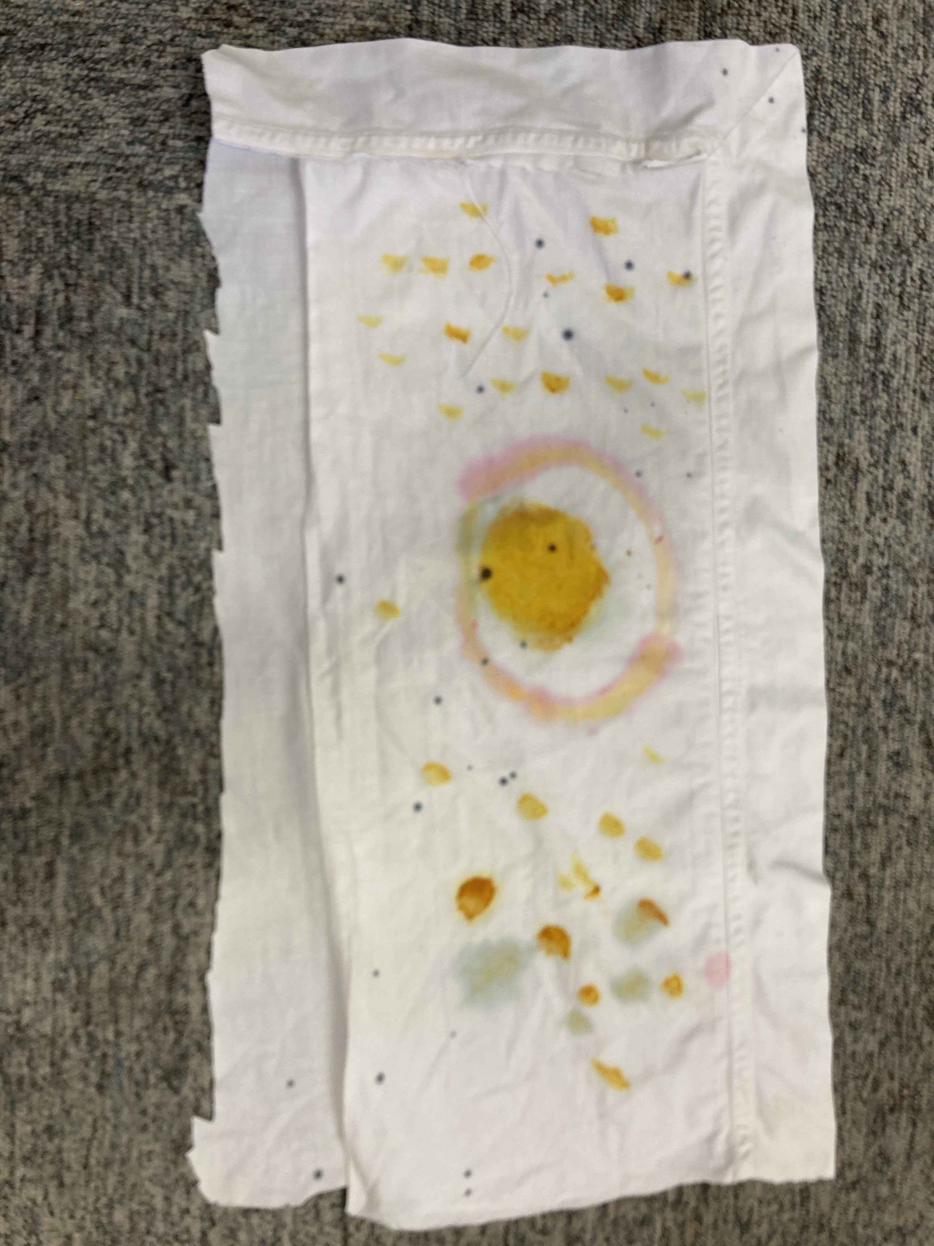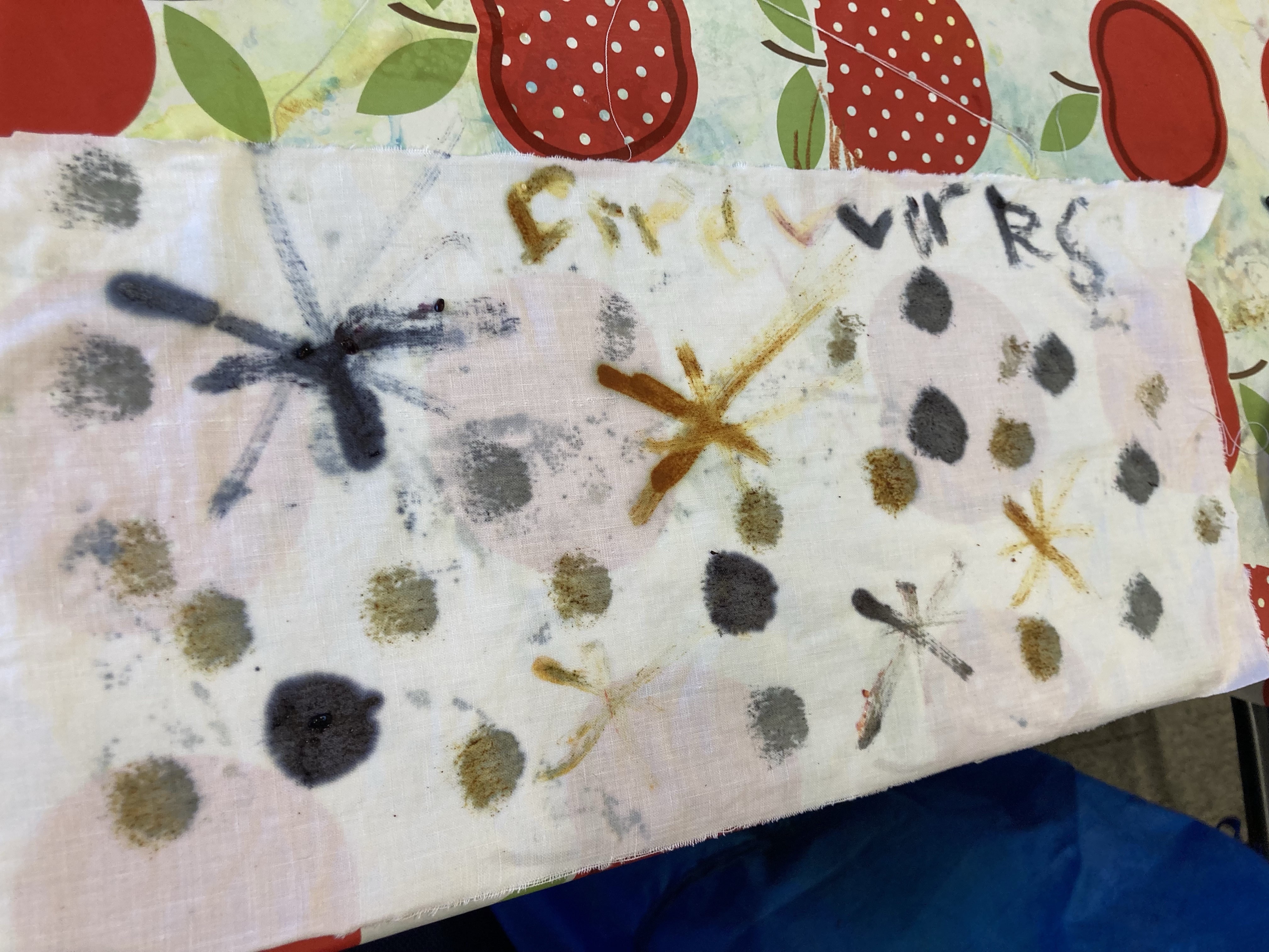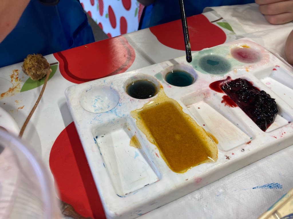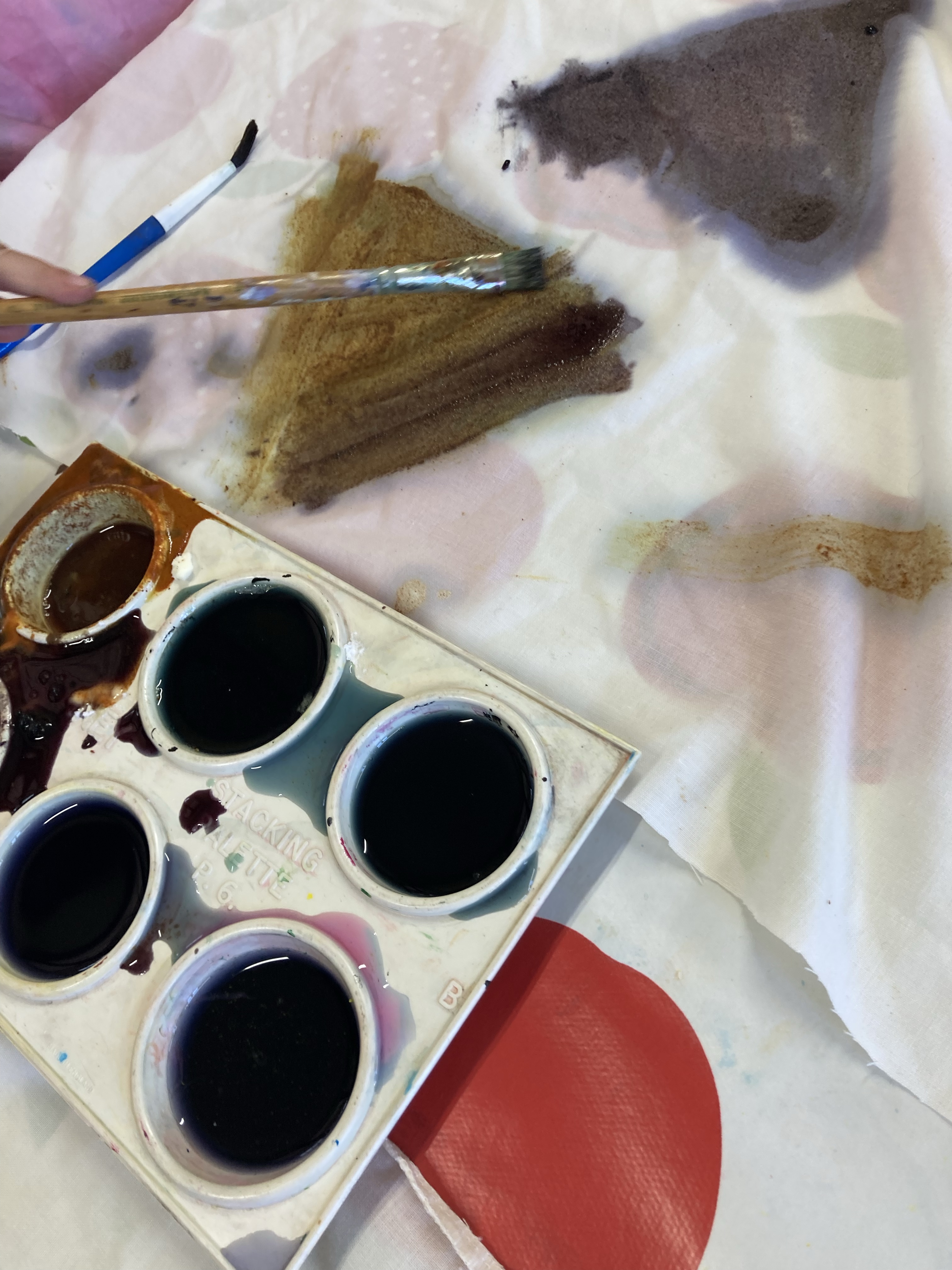 Today we had lots of fun exploring some of the natural dyes we can make using vegetables and berries that we can buy from the shops. We used red cabbage, blackberries, spinach and turmeric to make our dyes.