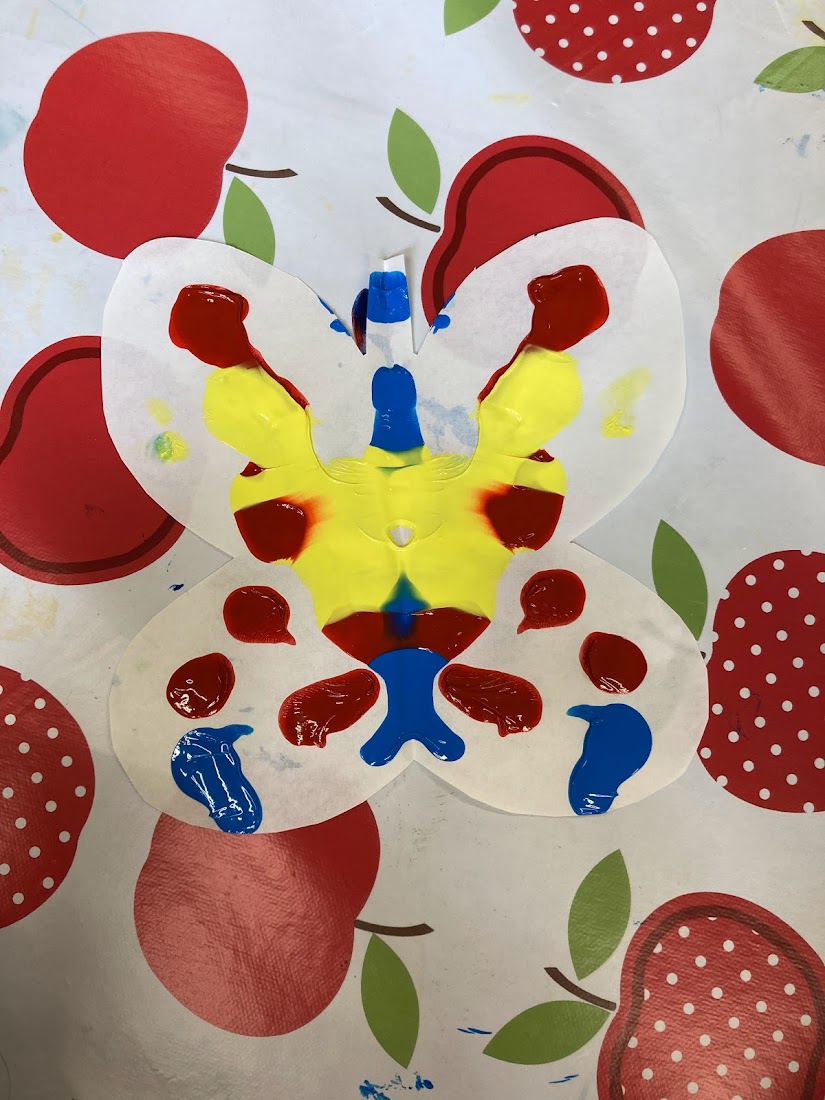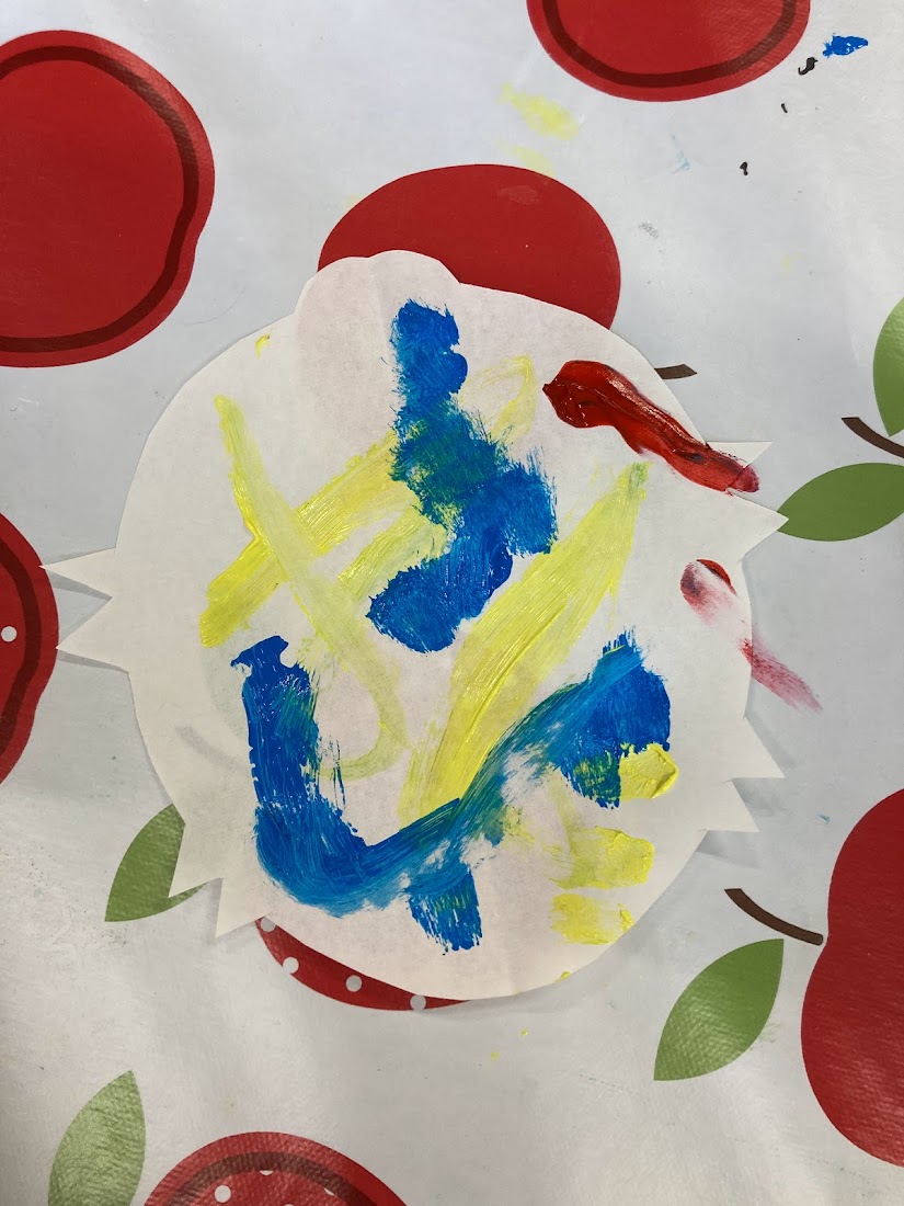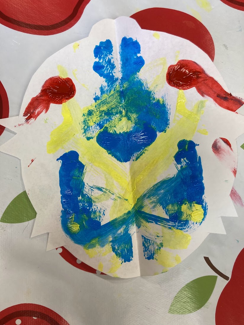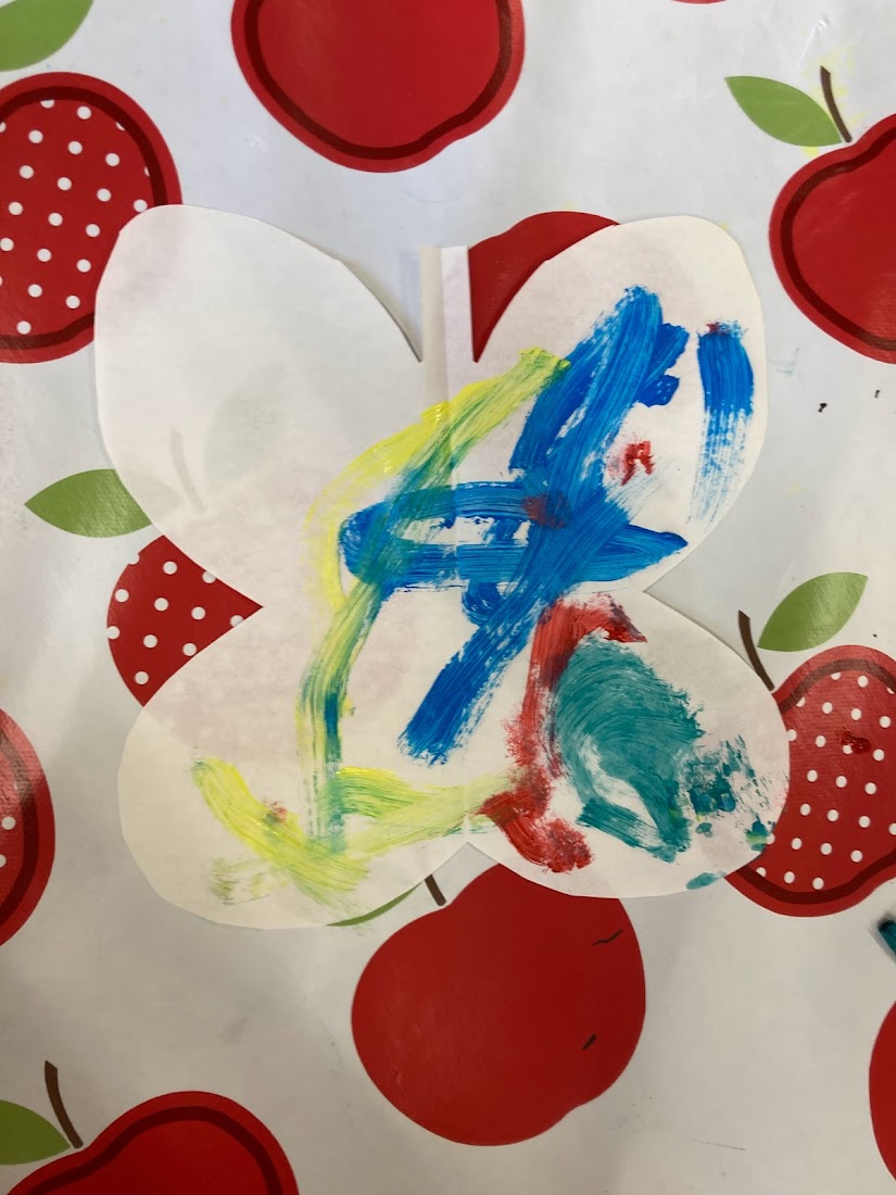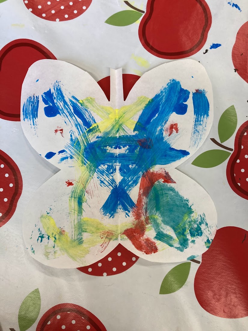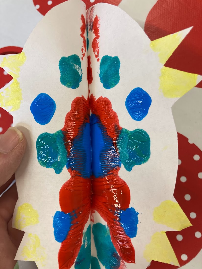 We tried out using paint brushes and squeezing the paint from the bottle directly onto the paper. The children’s favourite part was squishing the paper together and then pulling it apart, especially when we squeezed the paint directly from the bottle as they could see the paint move as they squished it.