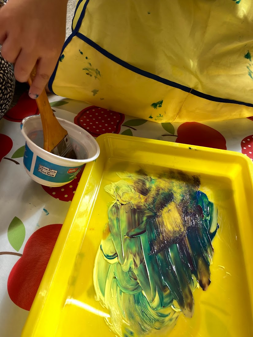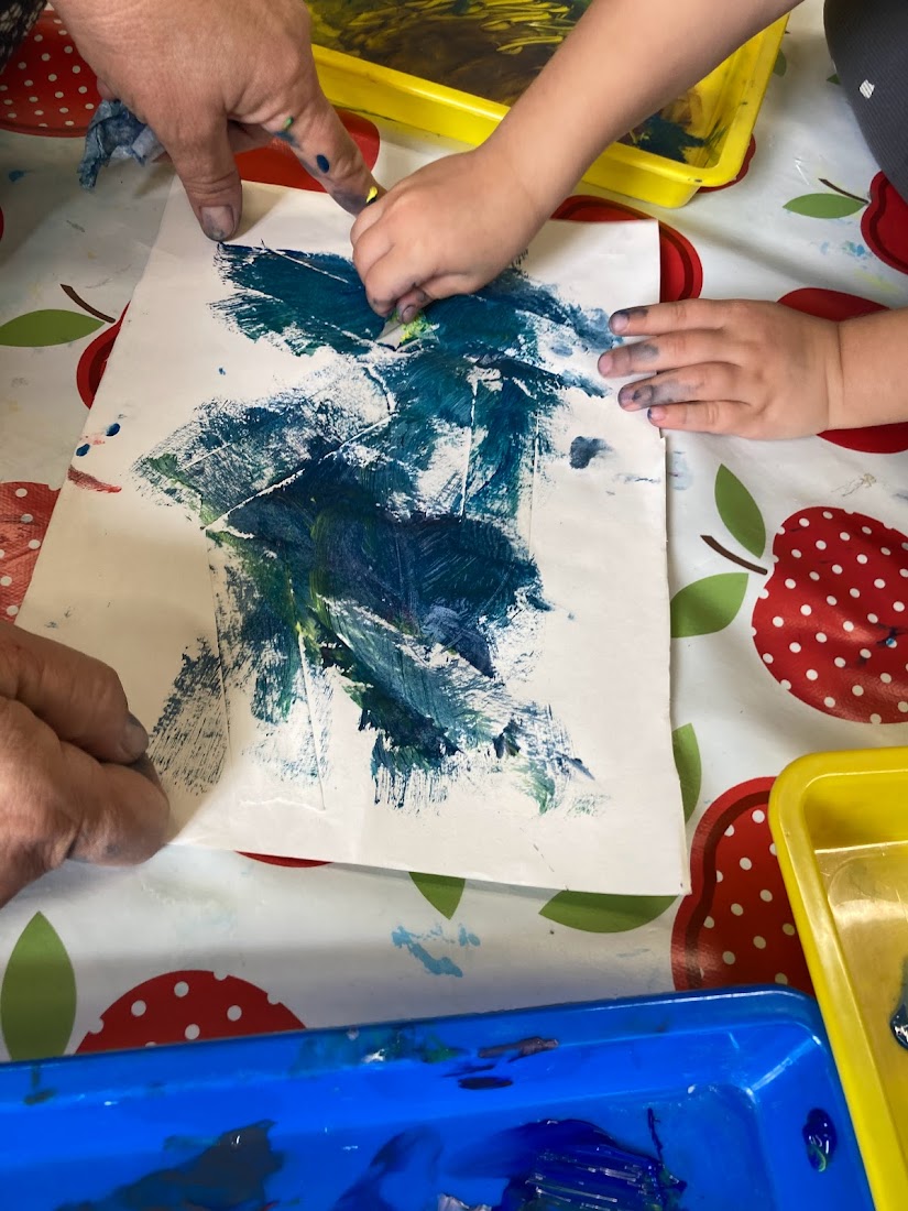 We ended up with some fun, messy process paintings and lots of smiles and giggles. Next week we are going to experiment with mark making with leaves.