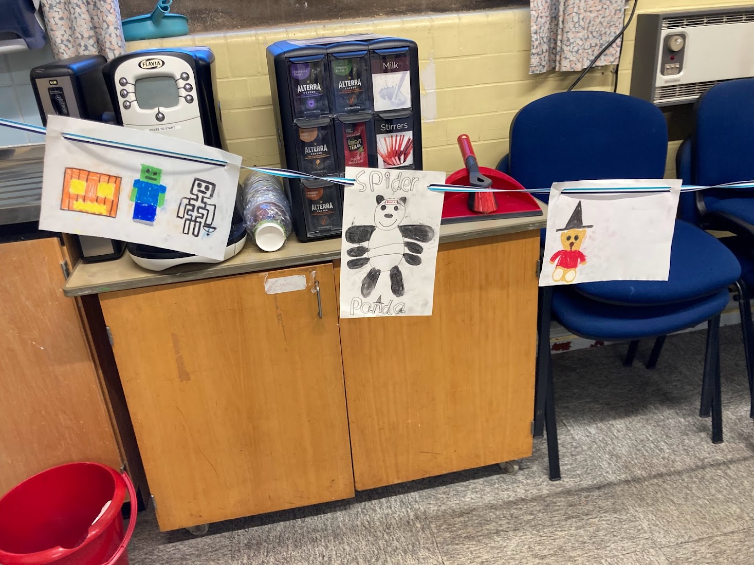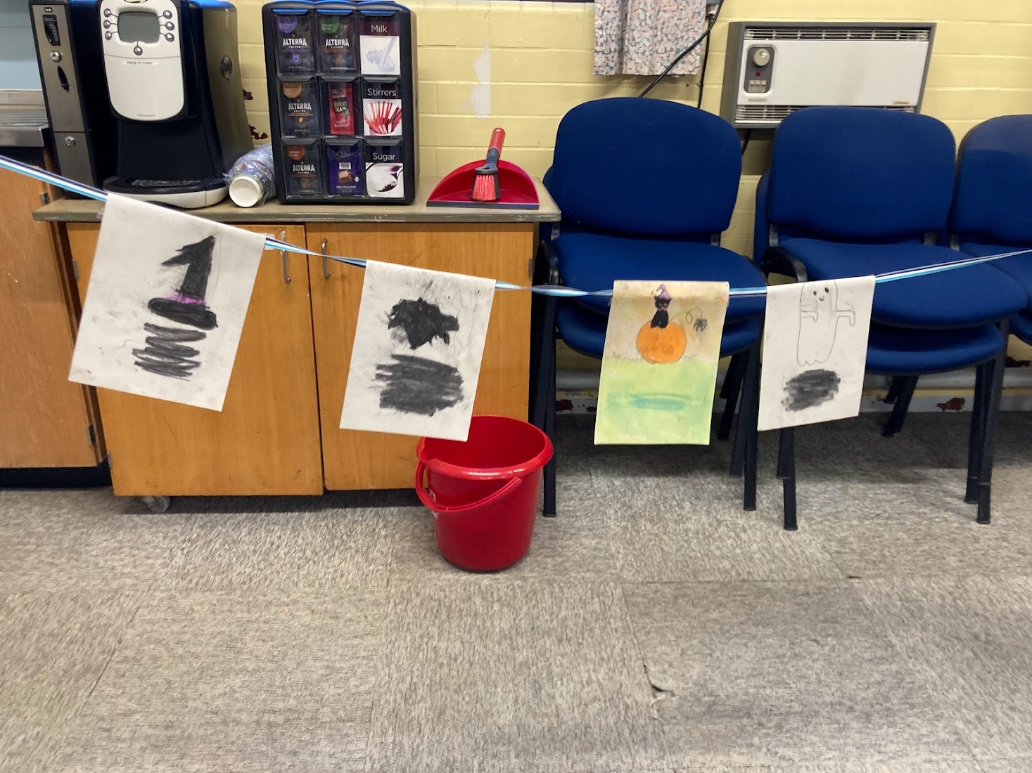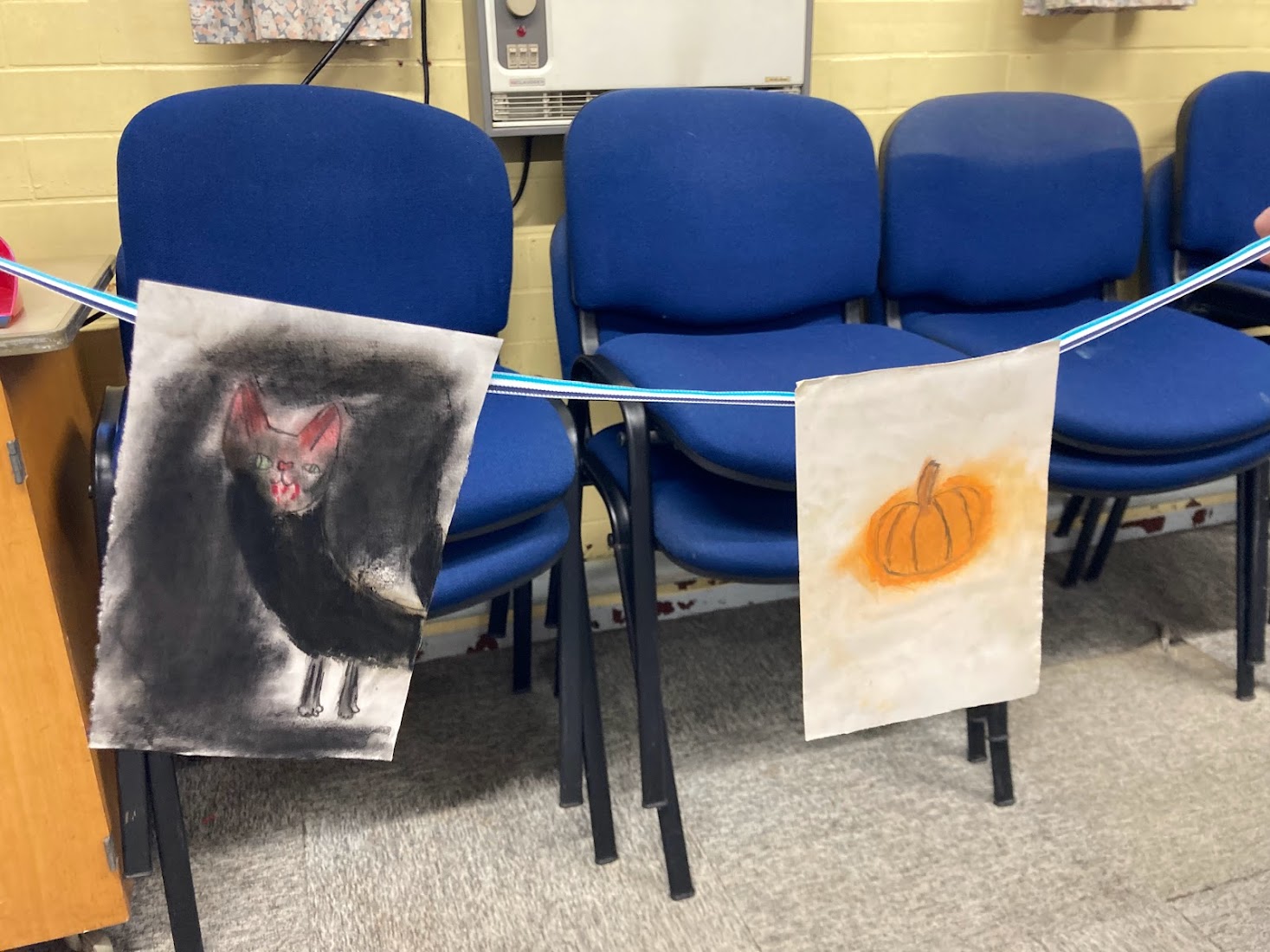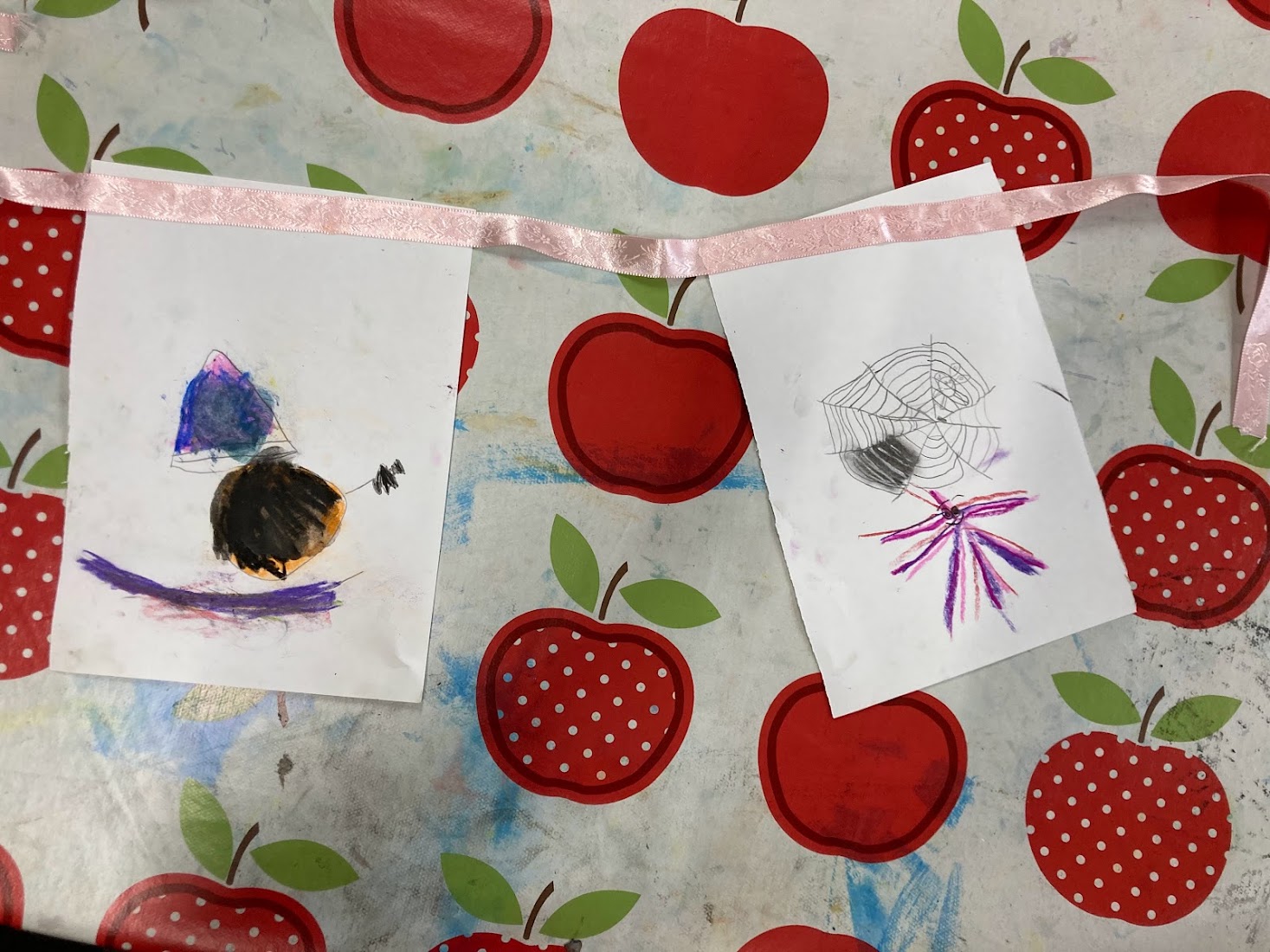This week we created some spooky Halloween bunting using paper, chalk pastels and ribbon in our Wed & Thurs afternoon sessions. Some of the children enjoyed coming up with a story as they made the bunting, so the order of the pictures on the string followed the story order.