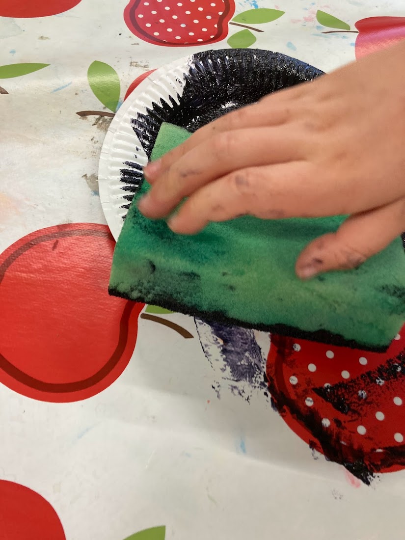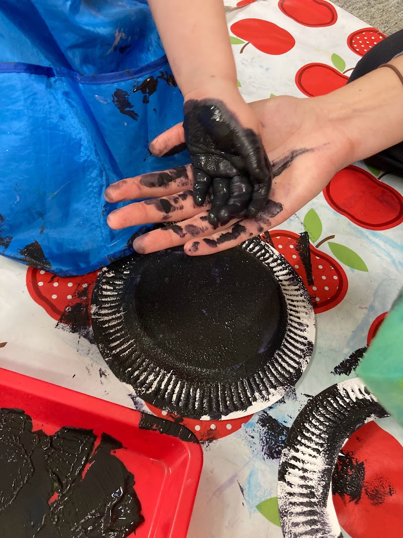 The first thing we did was paint some paper plates for the witch’s cauldron black so we could leave them to dry while we did our science experiments. We used a sponge and dabbed the plates to add some texture to them rather than smearing the paint.