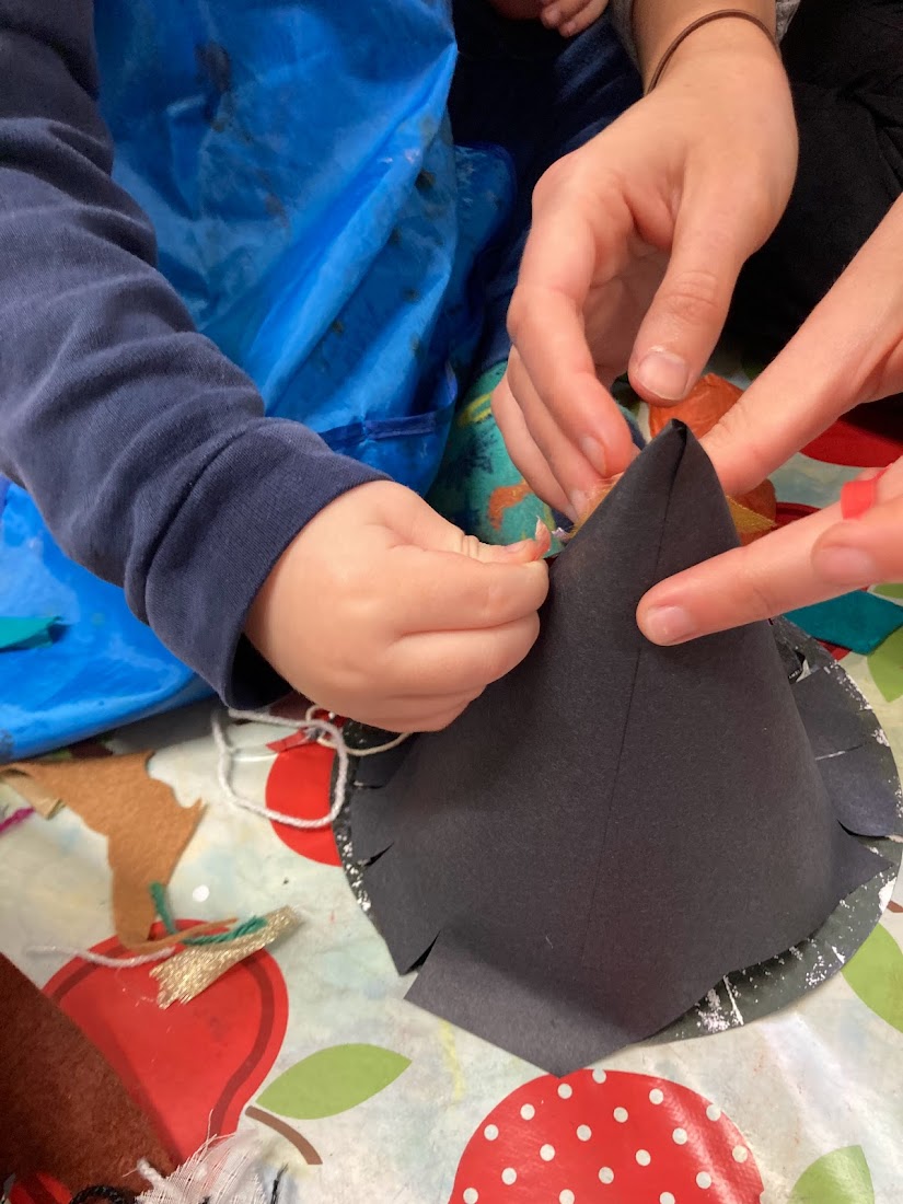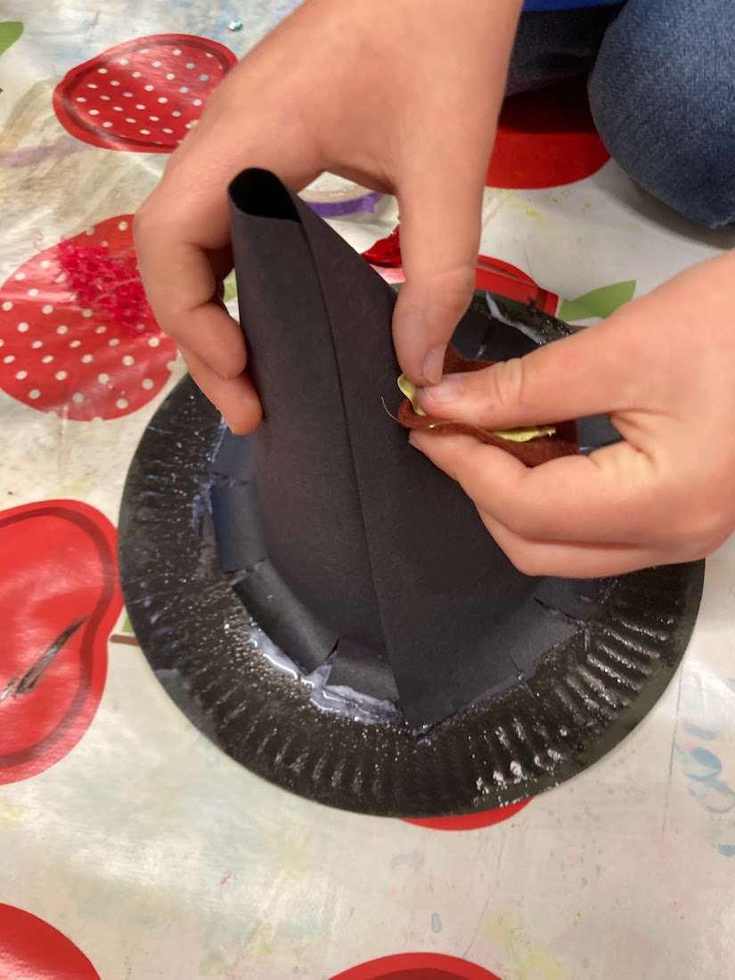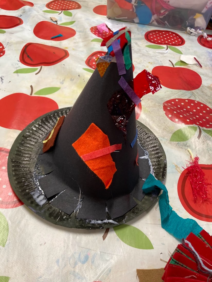 For our final craft we made a witch hat using black card and a paper plate, which we then decorated using collage materials.
