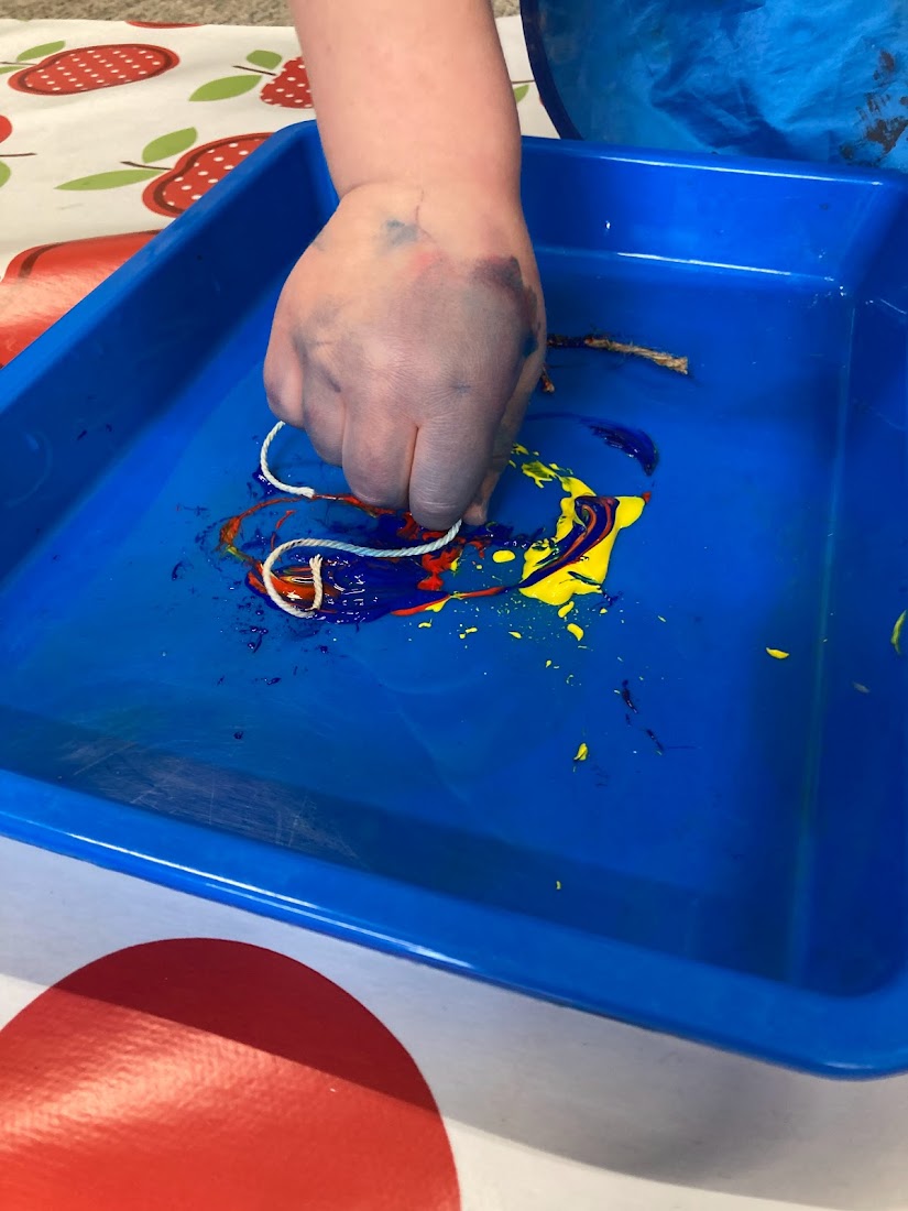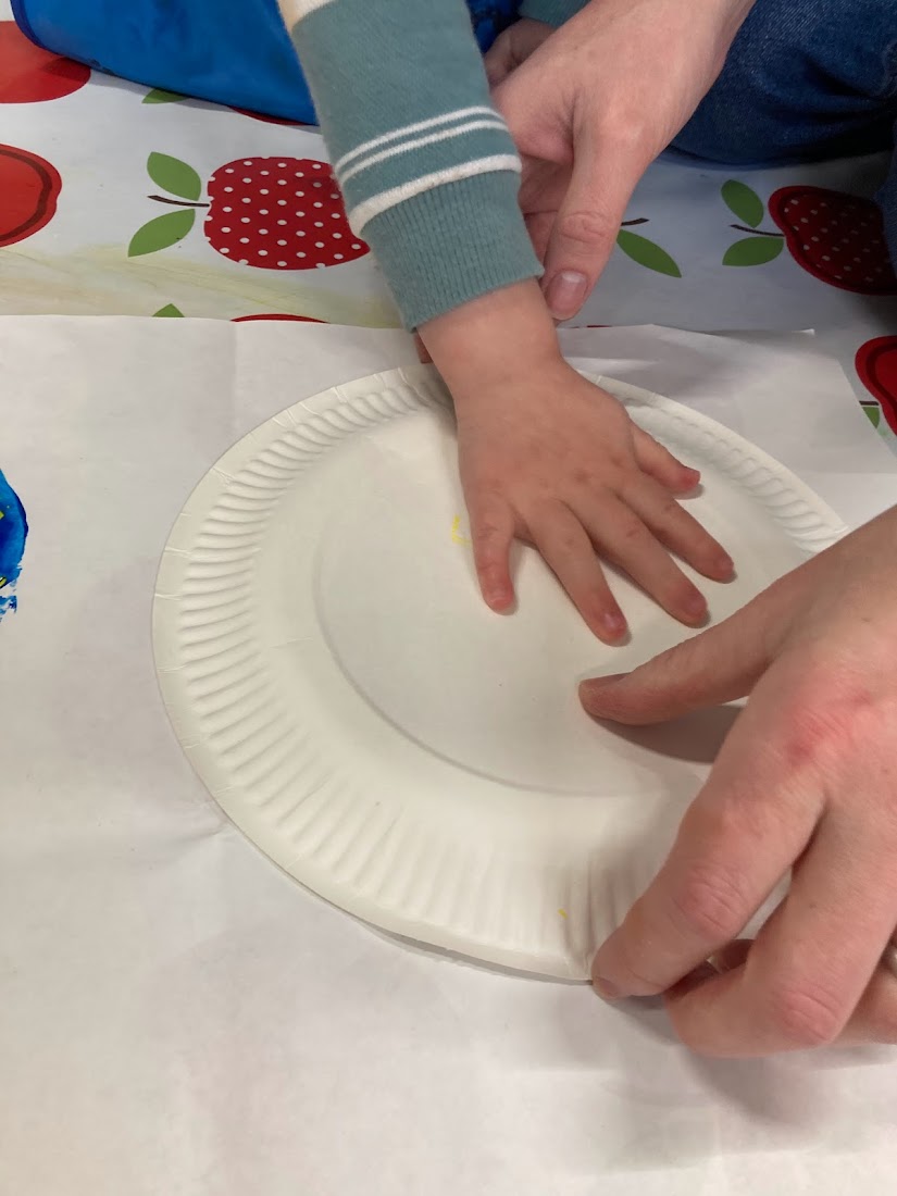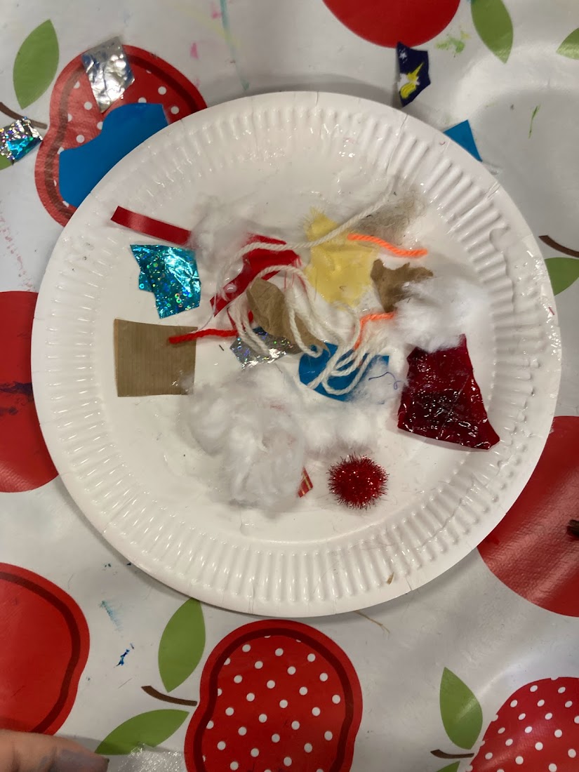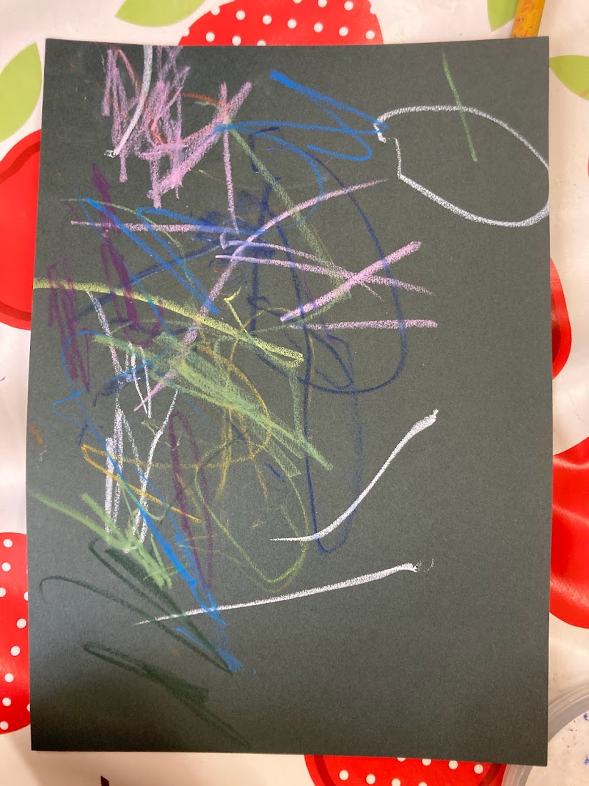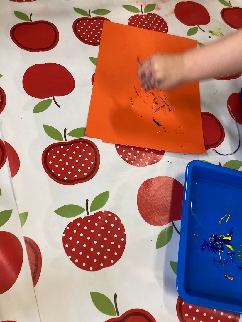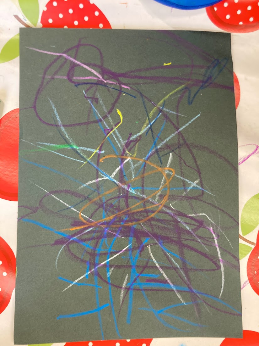 During the second half we made three different crafts. First we had fun trying out string painting. Then the toddlers enjoyed mark making with oil pastels for their final firework picture. For the last activity we had a collage box of different materials, some glue and paper plates and they had lots of fun making their own bonfires.