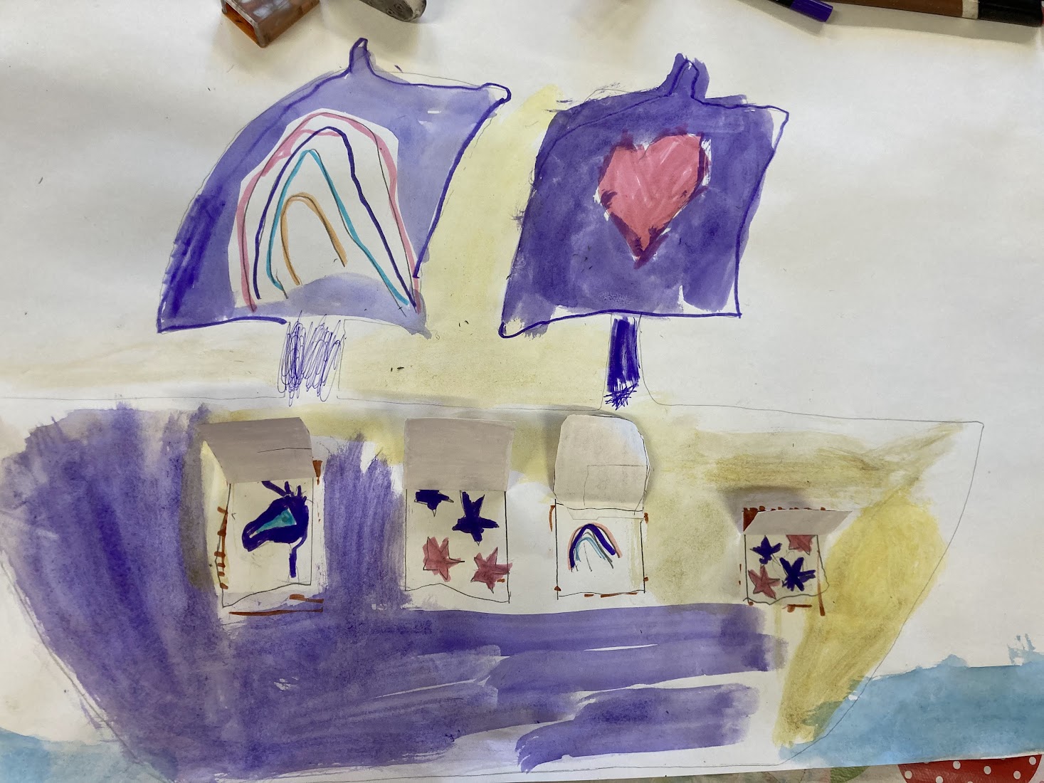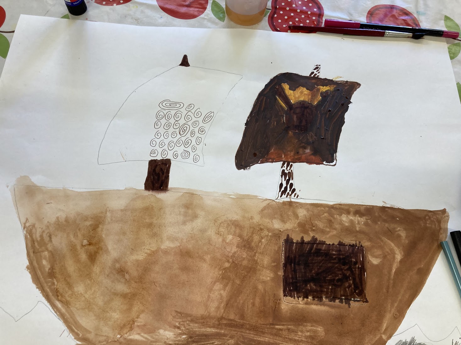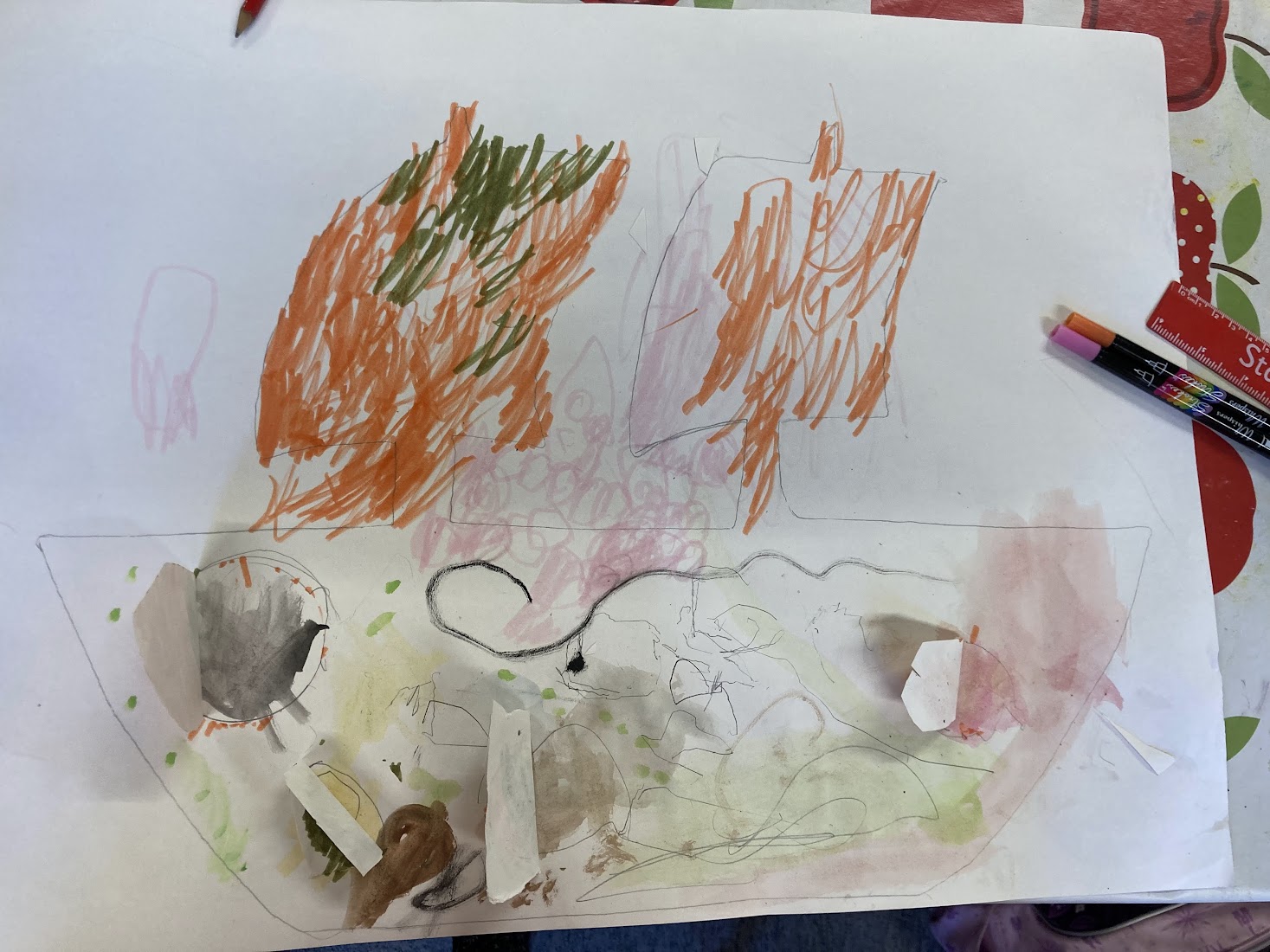 After everyone had finished creating their potions they had a go at making some observational drawings. They had a choice of charcoal, pencil and pens. One of the children decided to experiment with dripping some of their potions on their page and enjoyed giving the spill marks an outline with a pen.