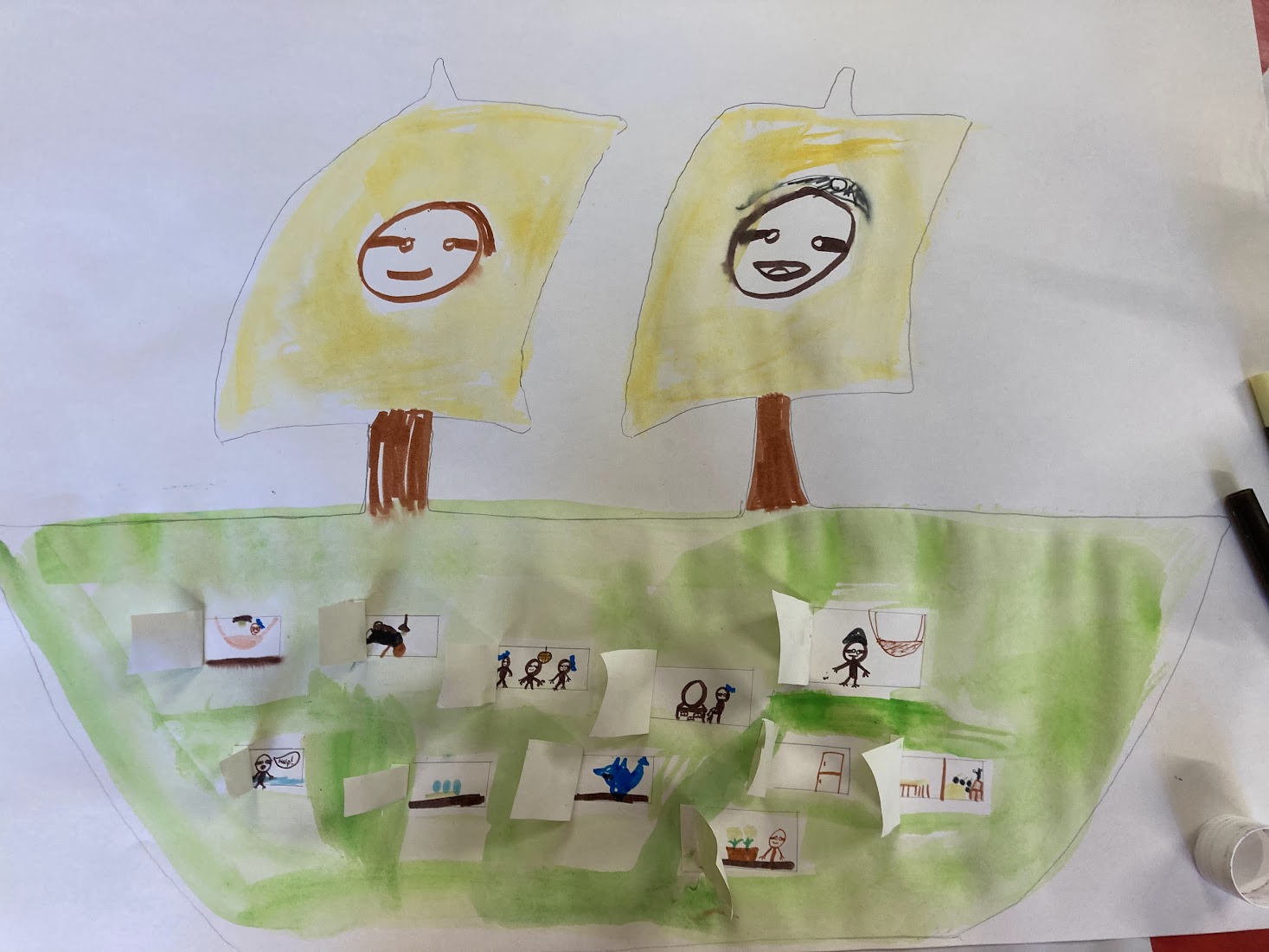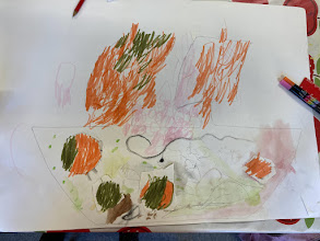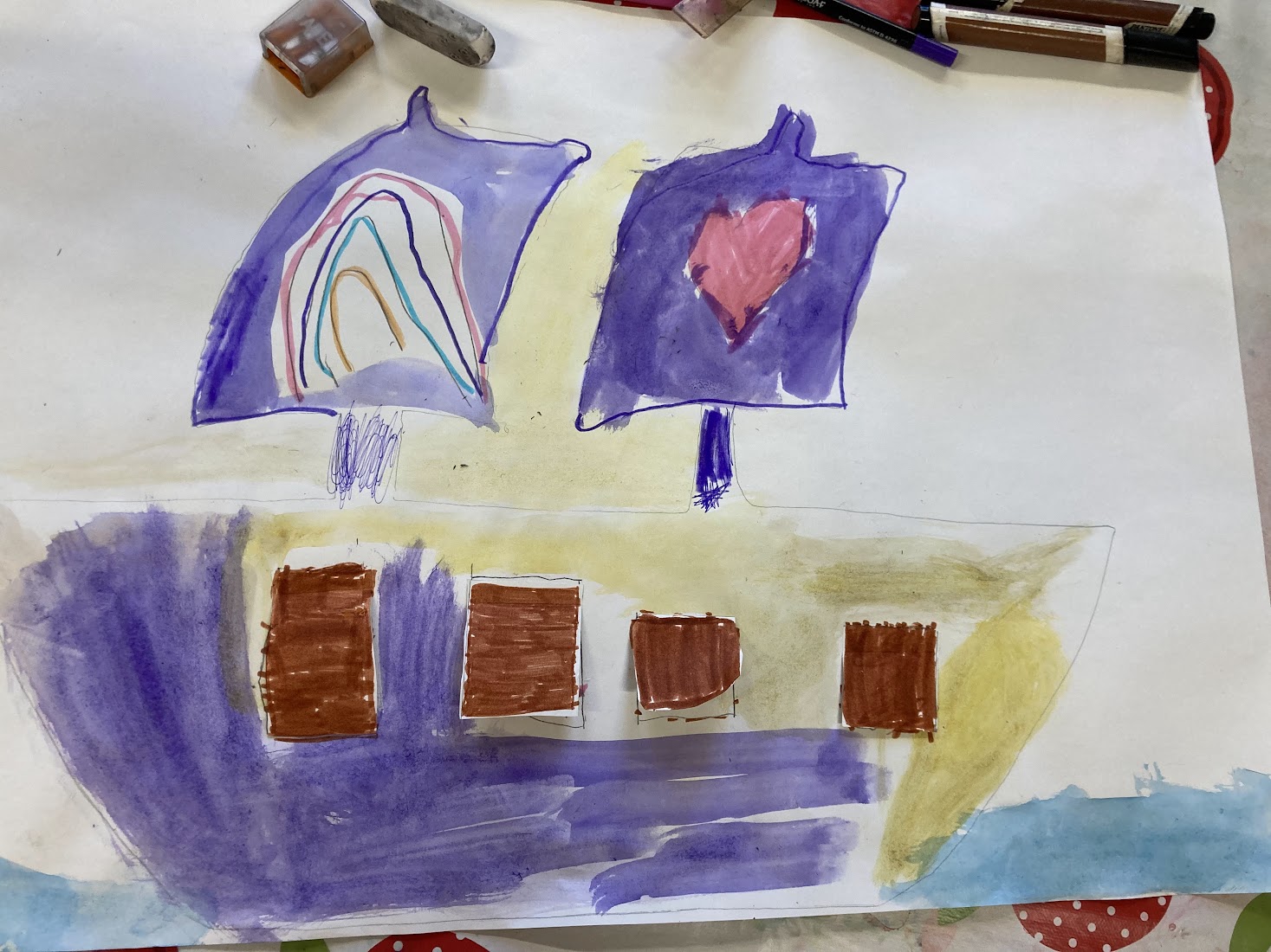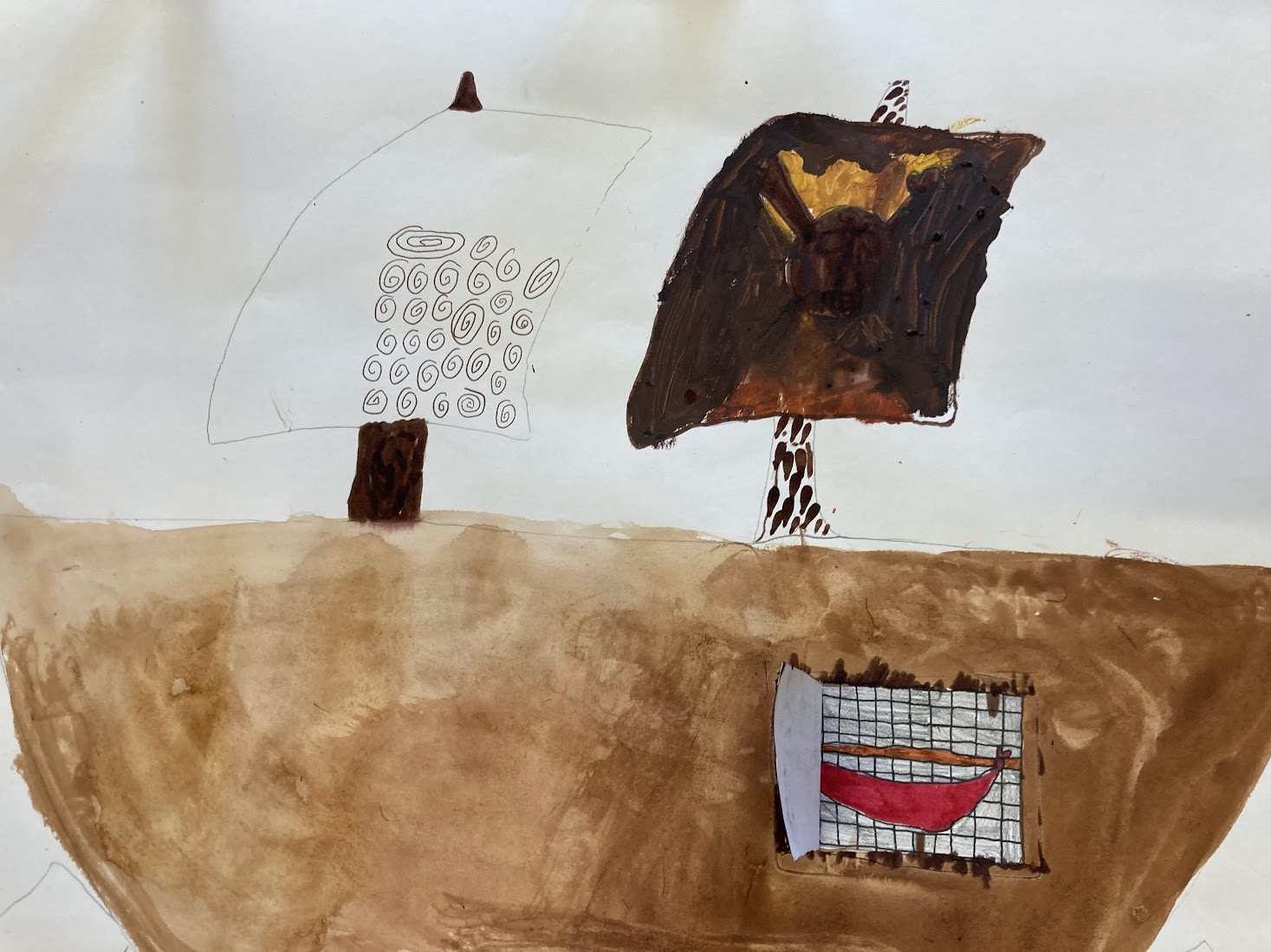 After everyone had finished creating their potions they had a go at making some observational drawings. They had a choice of charcoal, pencil and pens. One of the children decided to experiment with dripping some of their potions on their page and enjoyed giving the spill marks an outline with a pen.