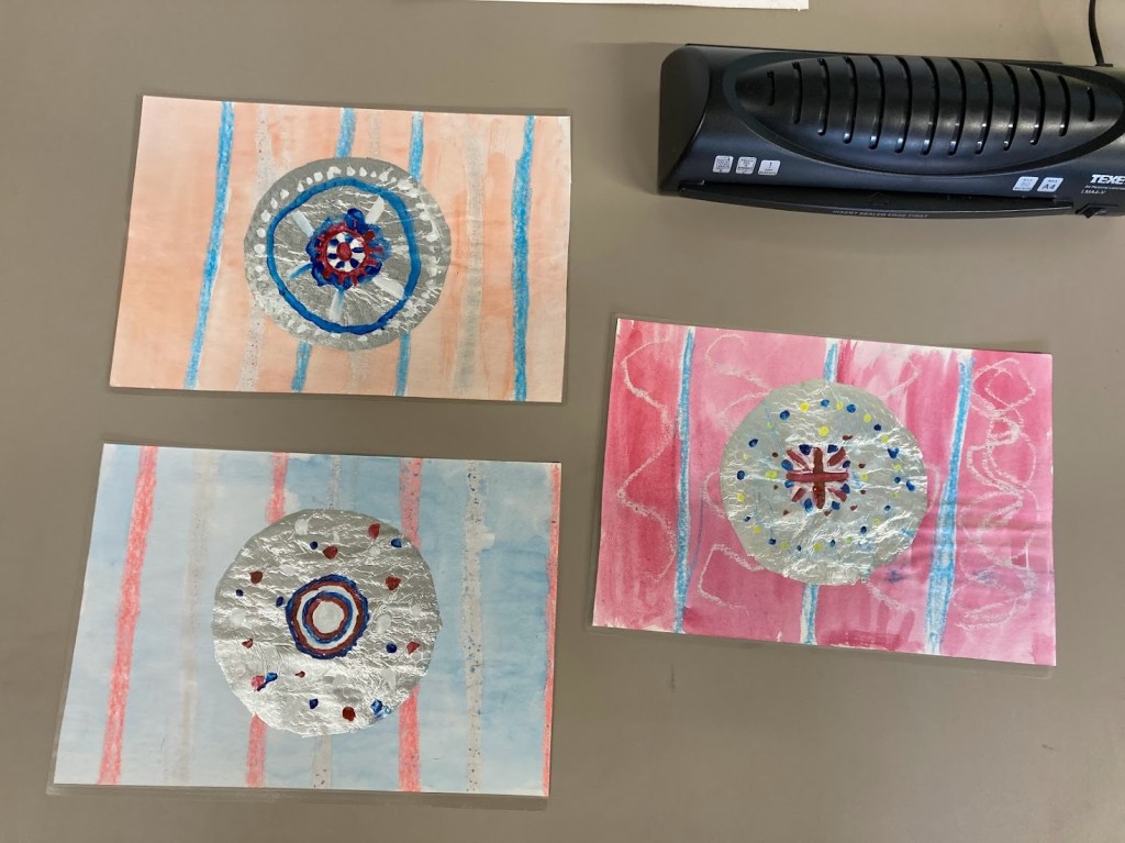 Today we created some lovely placemats and garlands for the Queen’s Jubilee, the children also decided to create some other decorations using different colours.